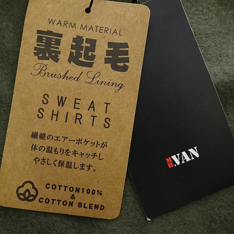 ・首元の裏部分にリブライン・左胸にはMR.VANのオリジナルロゴを刺繍で施したデザイン。 ・袖口と裾にリブを入れて防寒性を高め裏起毛素材を使用することで、柔らかな肌ざわりで繊維のエアーポケットが体の温もりをキャッチし体をやさしく保温します。 ・着用時期は秋・冬シーズンがオススメです。 |