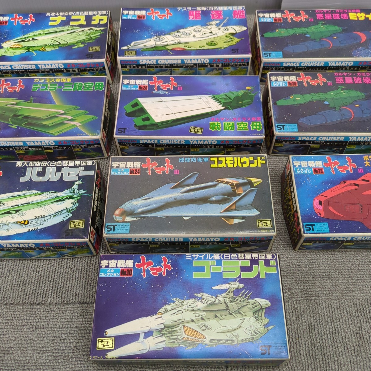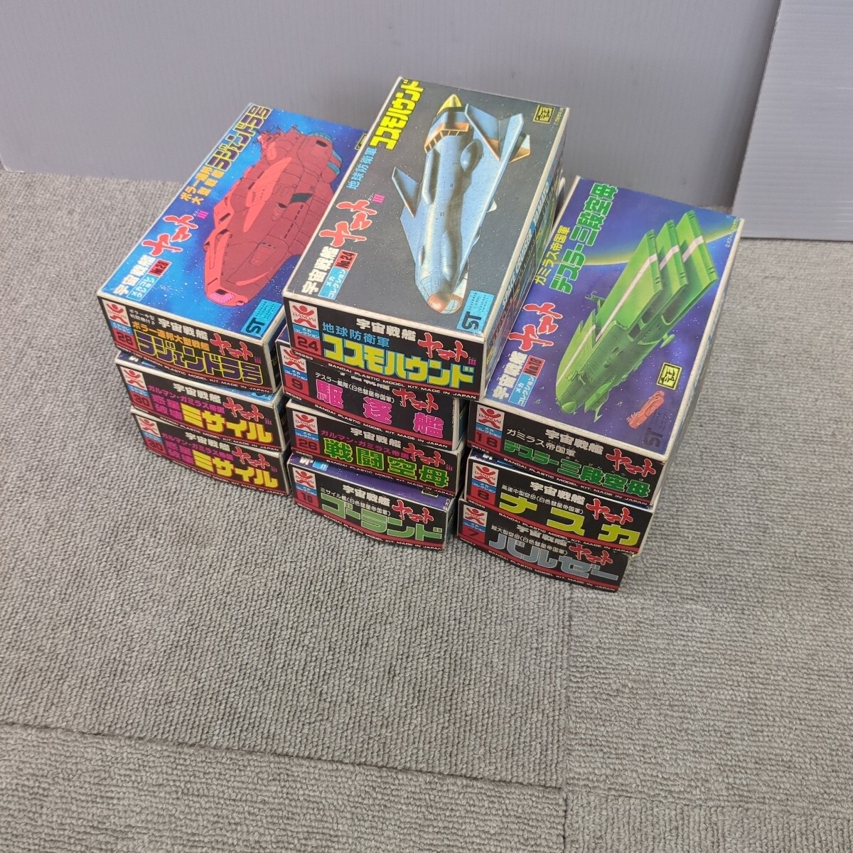 当時物の宇宙戦艦ヤマトのプラモデル9種類10個セットです。当時の懐かしいプラモデルです。外箱は多少汚れ有りますが、破損無いです。中身のプラモデルも未開封品です。完璧では無いですが、今では中々揃わないです。画像での確認で、落札検討お願いします。