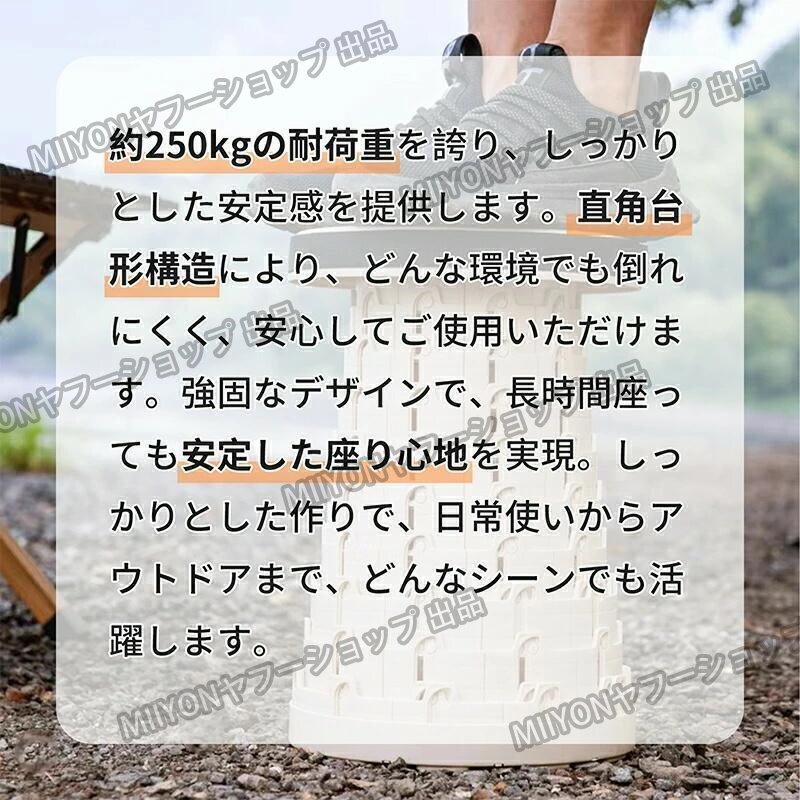 ■この折りたたみ椅子は、アウトドア活動に最適なコンパクトで軽量なデザインが特徴です。キャンプや釣り、登山、運動会など、さまざまなシーンで活躍します。高さ調整が可能で、使用者のニーズに合わせて快適に座ることができます。肩掛けや手持ちが可能なため、持ち運びも簡単です。おしゃれでかわいいデザインが魅力的で、レジャーシーンを彩ります。耐荷重250kgの頑丈さも兼ね備え、安心してご使用いただけます。