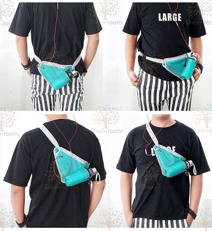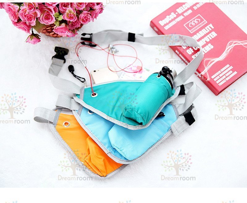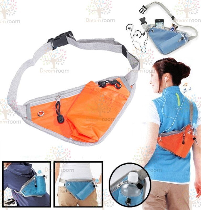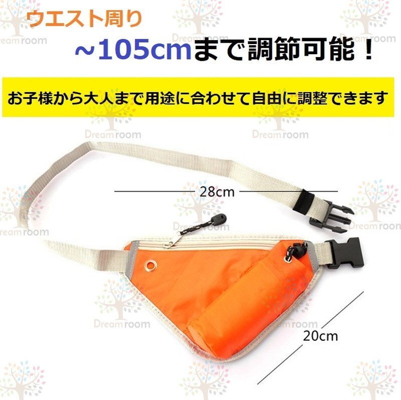 イヤホンホール付 トライアングル ランニング ポーチ オレンジ 軽量 ウエストバッグ 反射素材 夜間反射 旅行 遠足 サイクリング 登山 多機能