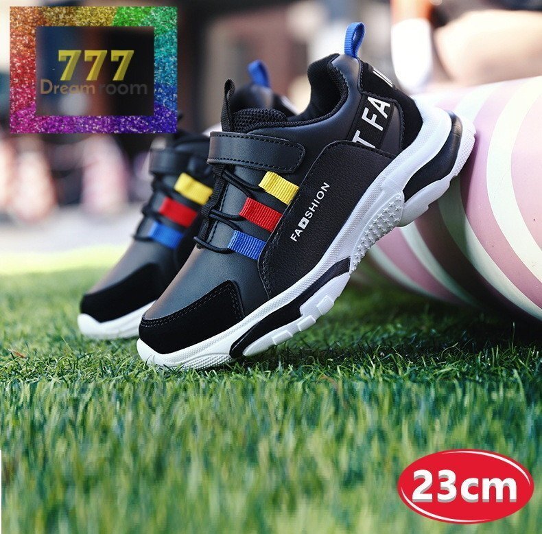 kids カラフルポイント スニーカー 【ブラック×ホワイト 23cm】 韓国子供服 キッズ シューズ 子供用 男女