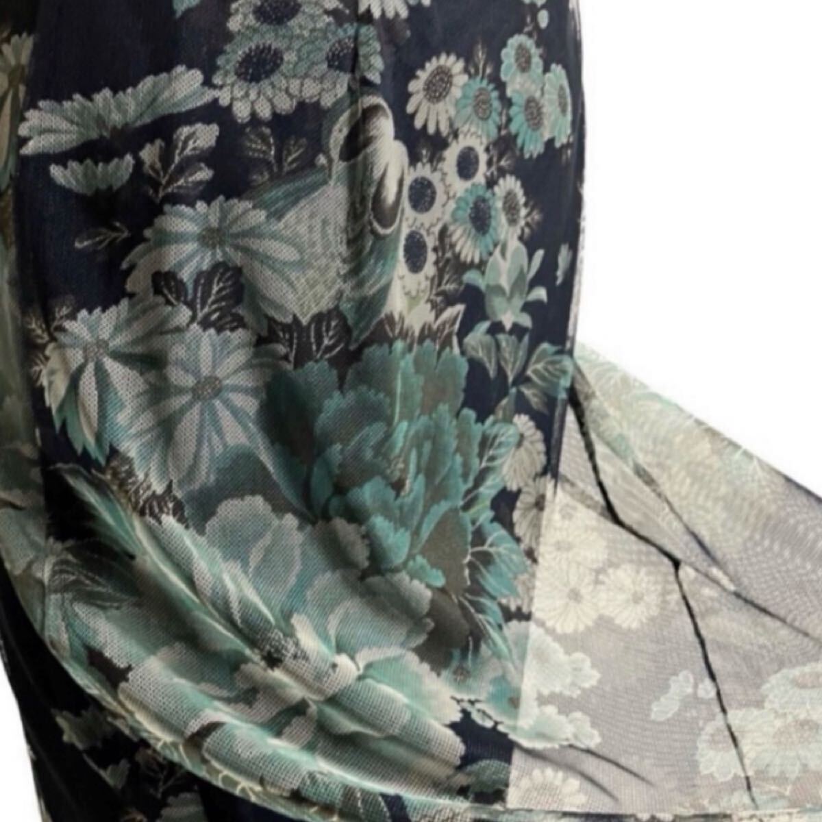 咲き誇るお花をイメージした、パッと目を惹くTABASAオリジナル 着物柄 和柄 花柄チュールロングワンピース です