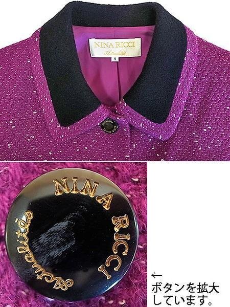 ニナリッチ  スーツ ≪ 長袖 ジャケット& ひざ丈 スカート≫ 上下set  長袖 9号 毛90% 紫 バイオレット系 (新品) No.A026  ◆ ::