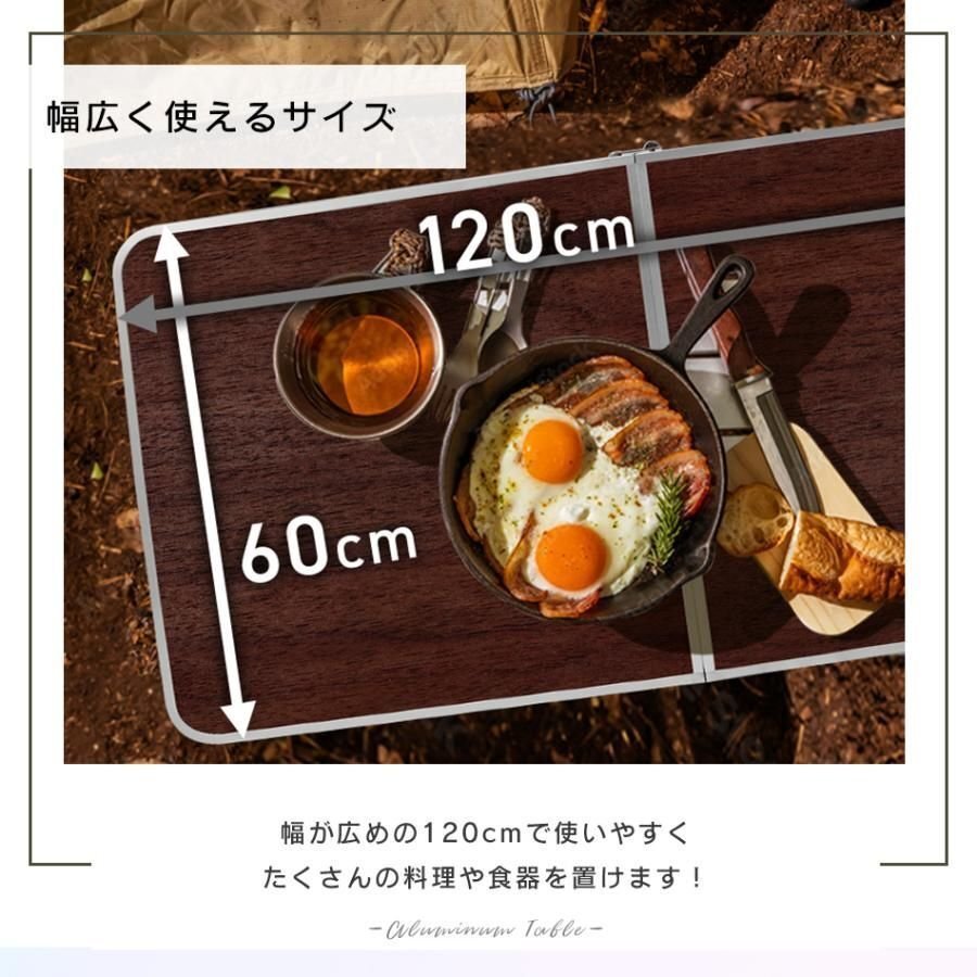 サビに強いアルミ使用! 天板には防水加工が施されています。 必要のない時は折りたたんで収納できる! 取っ手付で持ち運びも楽々♪ テーブルは3段階の高さ調節ができ、お好みのスタイルに合わせて ハイスタイル・ミドルスタイル・ロースタイルの3パターンでお使いいただけます♪ 天板中心部にはパラソル用ホールがあるので、ベランダやテラスでの使用にもおススメ♪ キャンプ、バーベキュー、お花見などにとても便利! 室内テーブルとして使用するのもOK! 【仕様】 折りたたみ式 サイズ:(約)120cm×60cm×高さ55?70cm(高さ3段階調節可能) 収納サイズ:(約)60cm×60cm×6.5cm パラソル用ホール直径サイズ(約):26mm 耐荷重(約):20kg 重量(約):4.7kg 材質:アルミ、MDF(耐熱・耐水加工)、ポリエステル、スチール