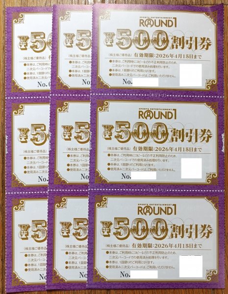 ①株主優待割引券4500円分(500円×9枚) ②クラブカード引換券3枚 ③ボウリング教室優待券3枚 です 有効期限は2026年4月15日です | |||