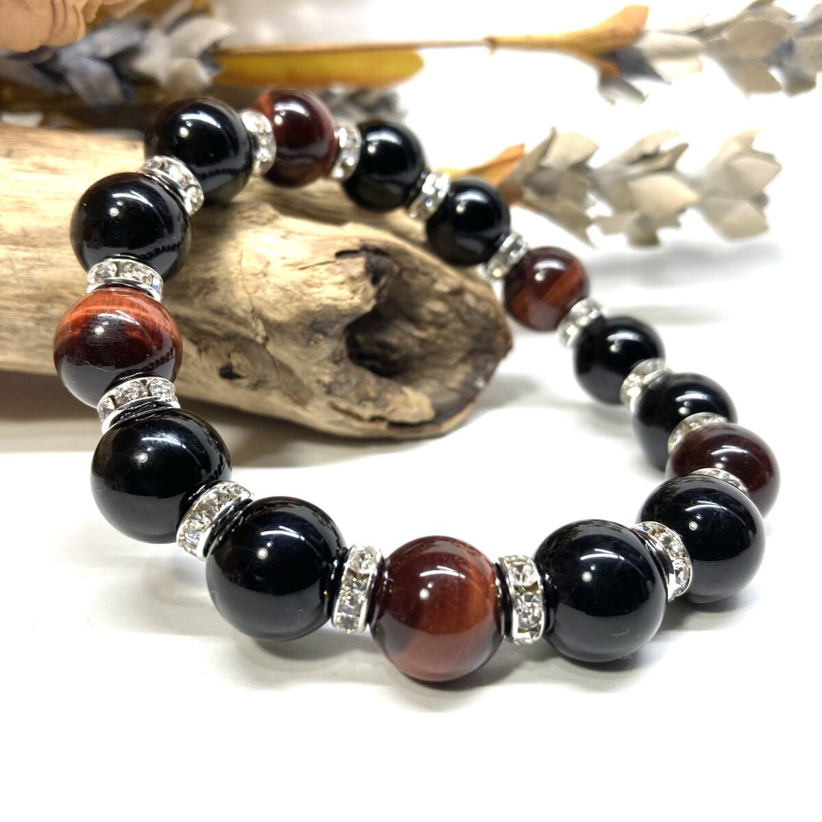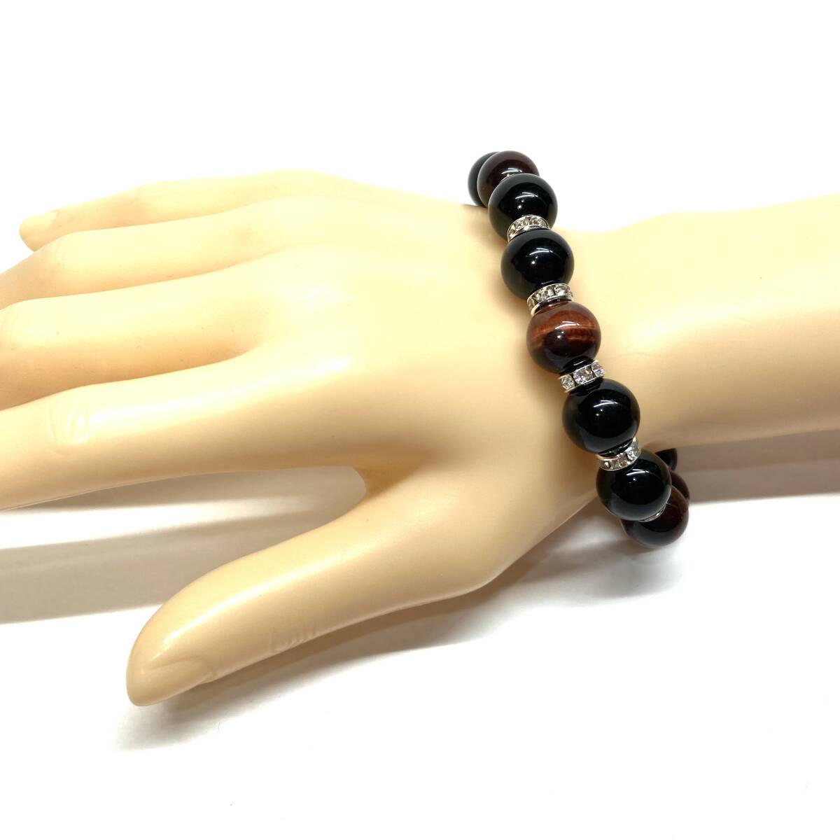 こちらは、モリオンとレッドタイガーアイを組み合わせたパワーストーンブレスレットです。間にはロンデルを挟み高級感あるデザインに仕上げております。程よくインパクトがある12mm玉を使用して内周約18cmです。(サイズ変更の場合は取引ナビにてご連絡をお願いします。) 数に限りがございますので気になる方はお早めにどうぞ。
