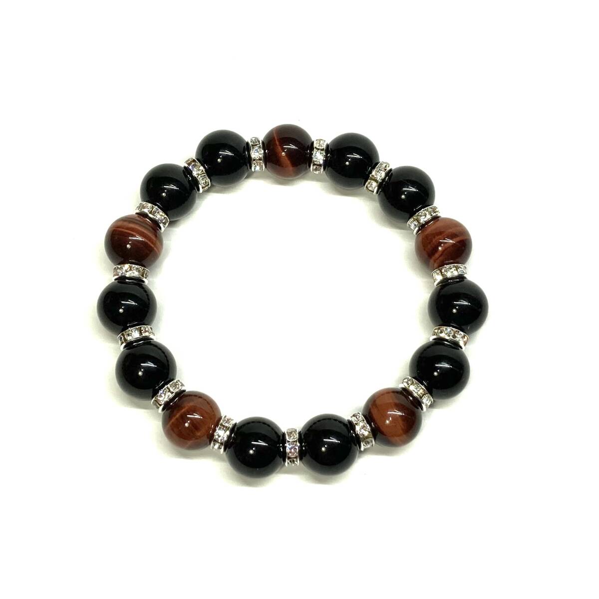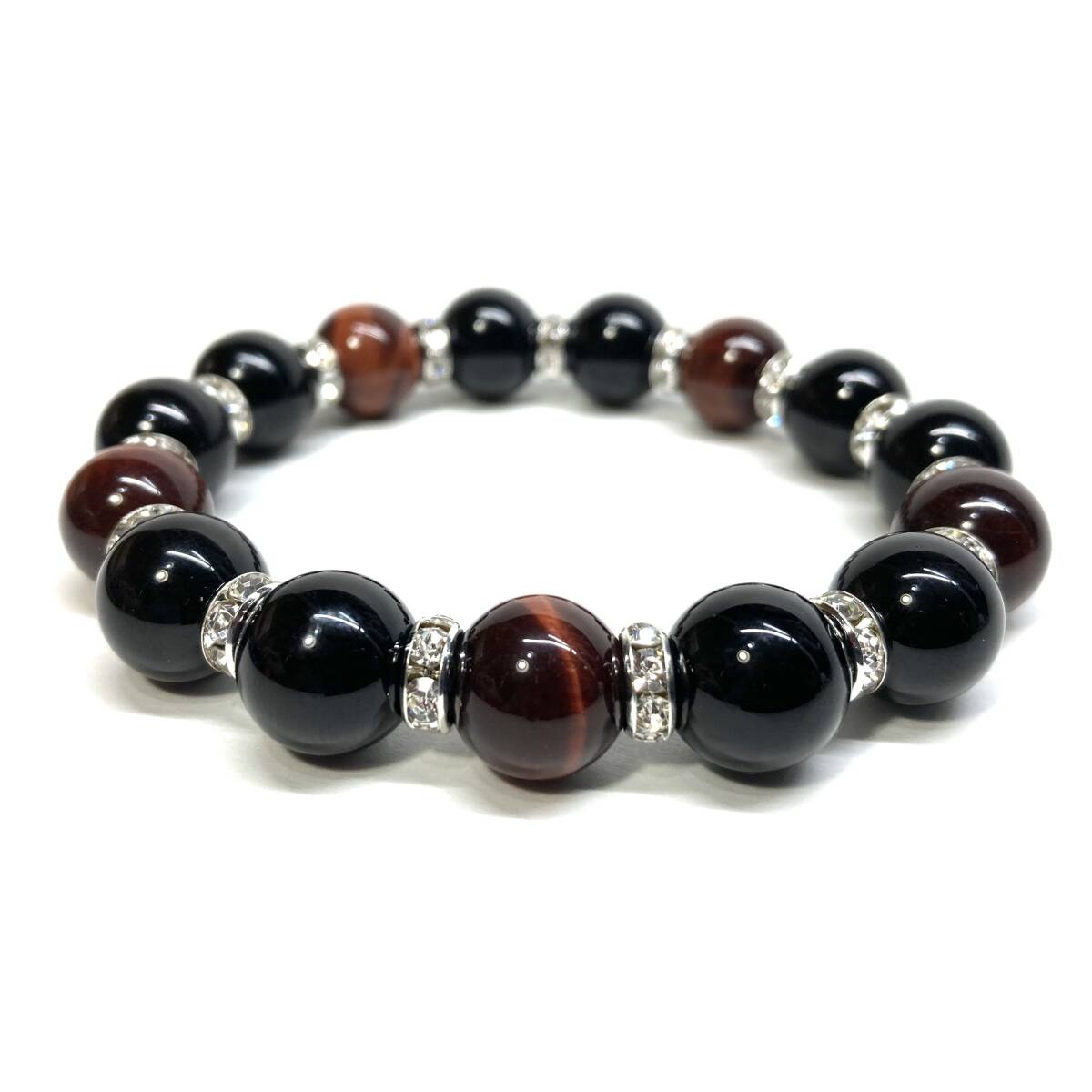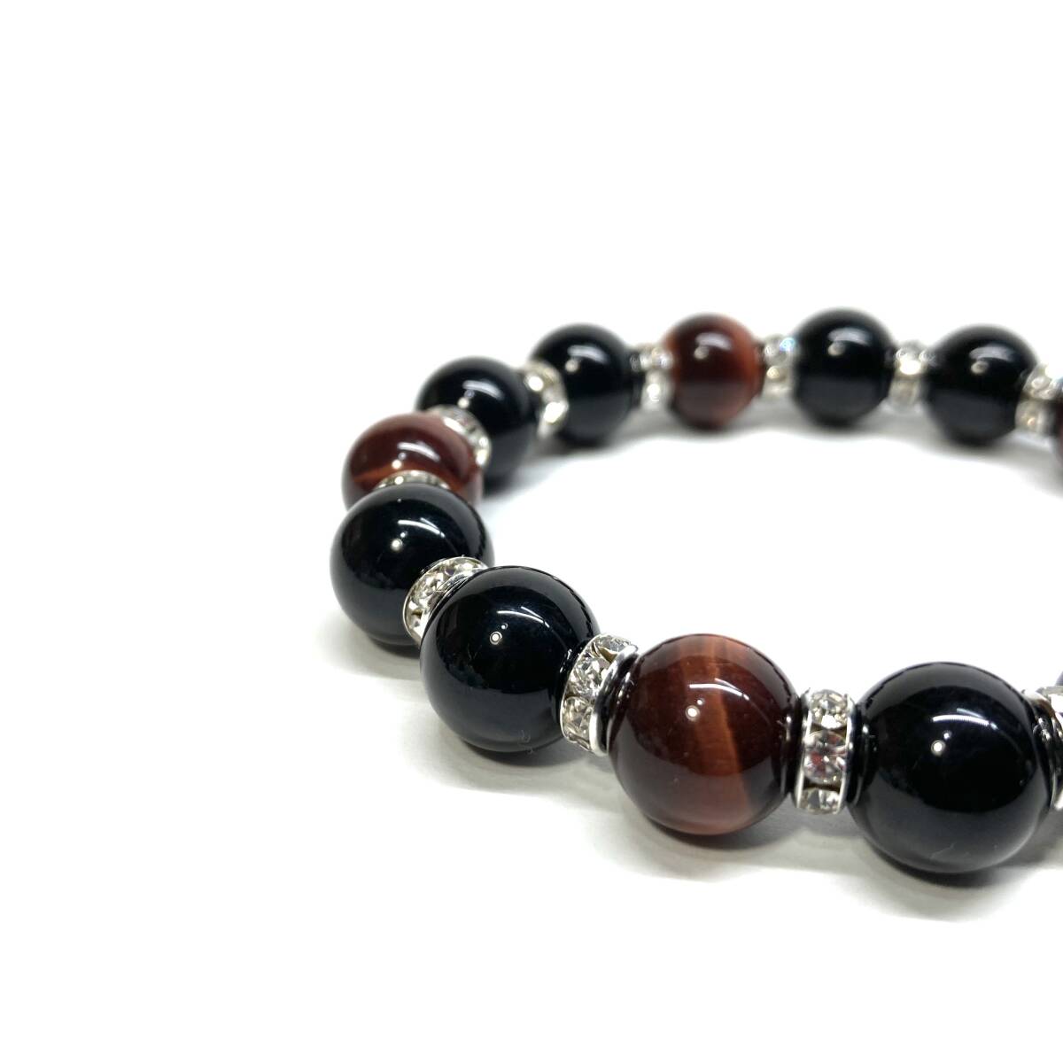 モリオン&レッドタイガーアイ パワーストーン ブレスレット 天然石ブレス (シルバー) 12mm 幸運 開運 メンズ 男性
