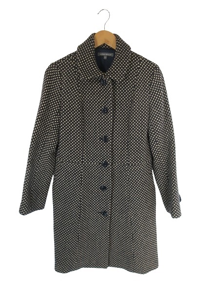 ローラアシュレイ LAURA ASHLEY ステンカラー コート ロング ボタン 総柄 ネイビー ベージュ サイズ9 QQQ レディース