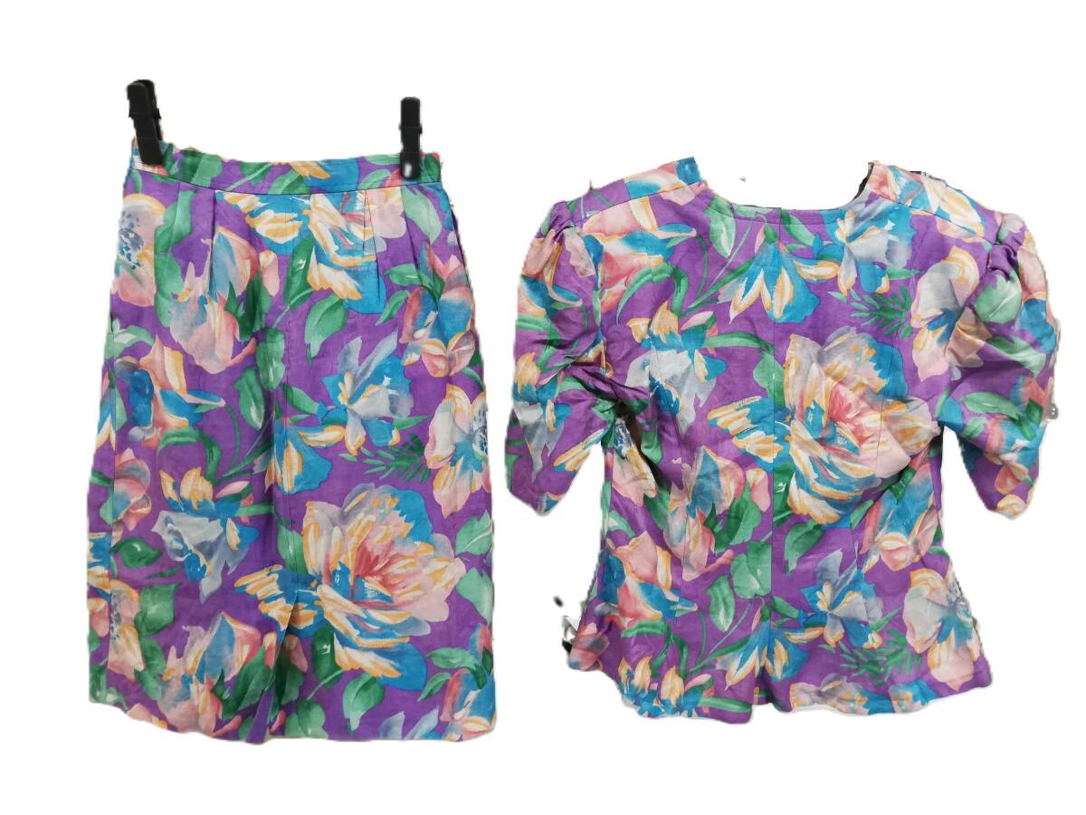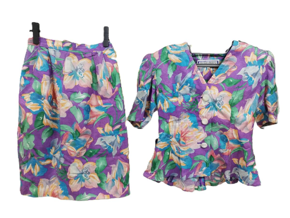 《 970208-10 Yves Saint Laurent/イブサンローラン レディースセットアップ 80年代ヴィンテージ 花柄 Lサイズ/マルチカラー【中古品】 の出品です。》