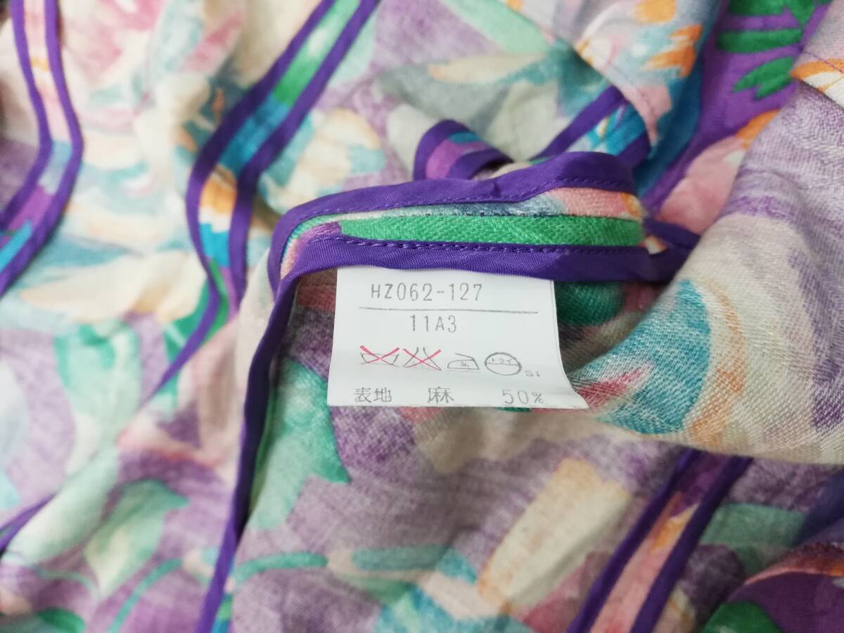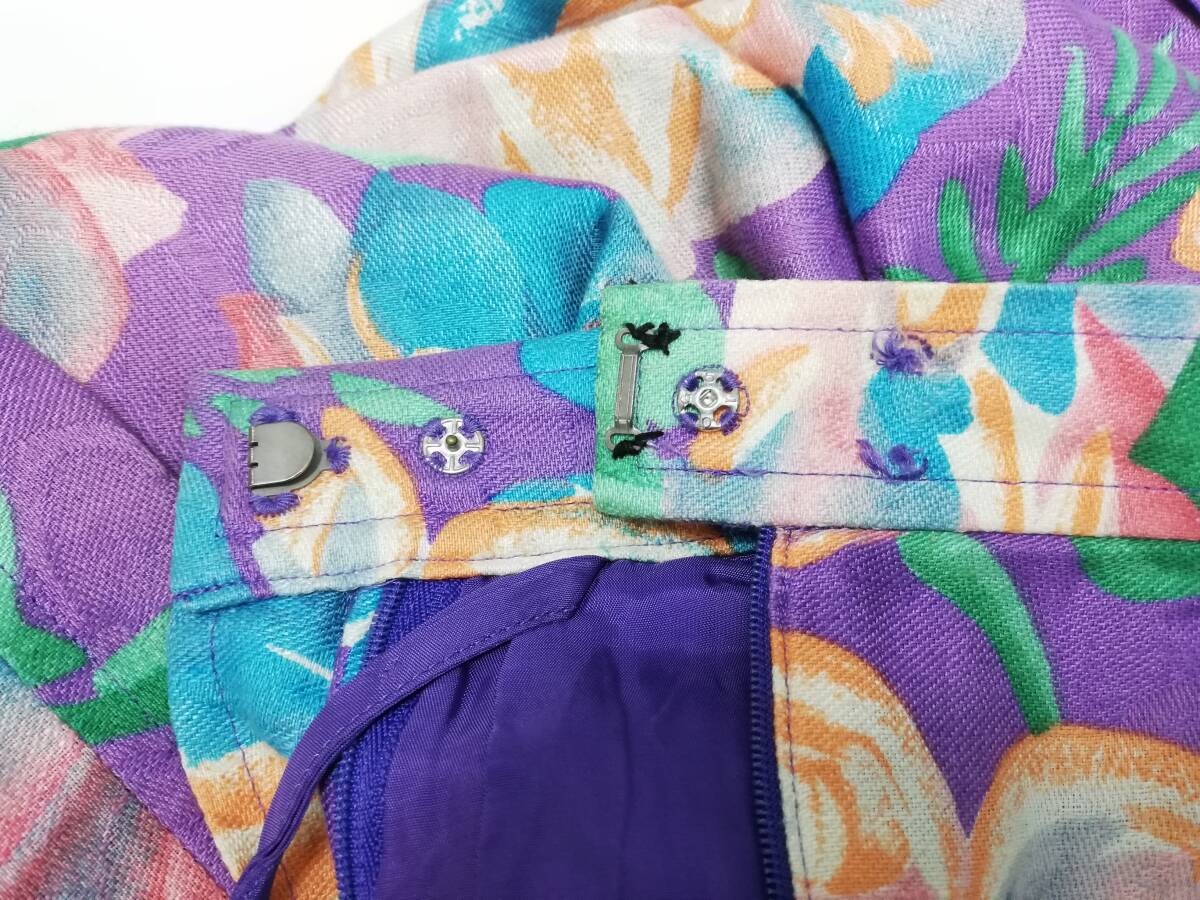 綿/麻混、目立つ汚れなし、トップス第3ボタン緩い、スカートホック欠品