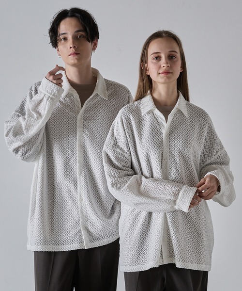 参考商品名:【CLEL】Balloon Sleeves Loose Lace Shirt/バルーン袖 ルーズ レースシャツ