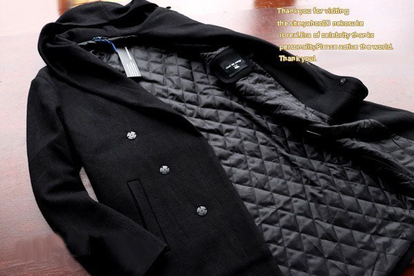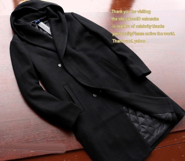 新品■C&a 重厚 wool ロング コート M 黒◆メンズ フード ショールカラー ブラック 中綿キルト スナップボタン シンプル アウター