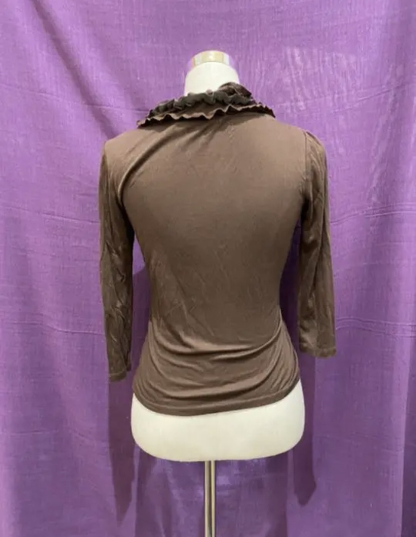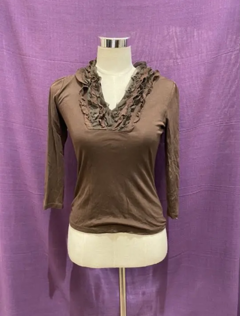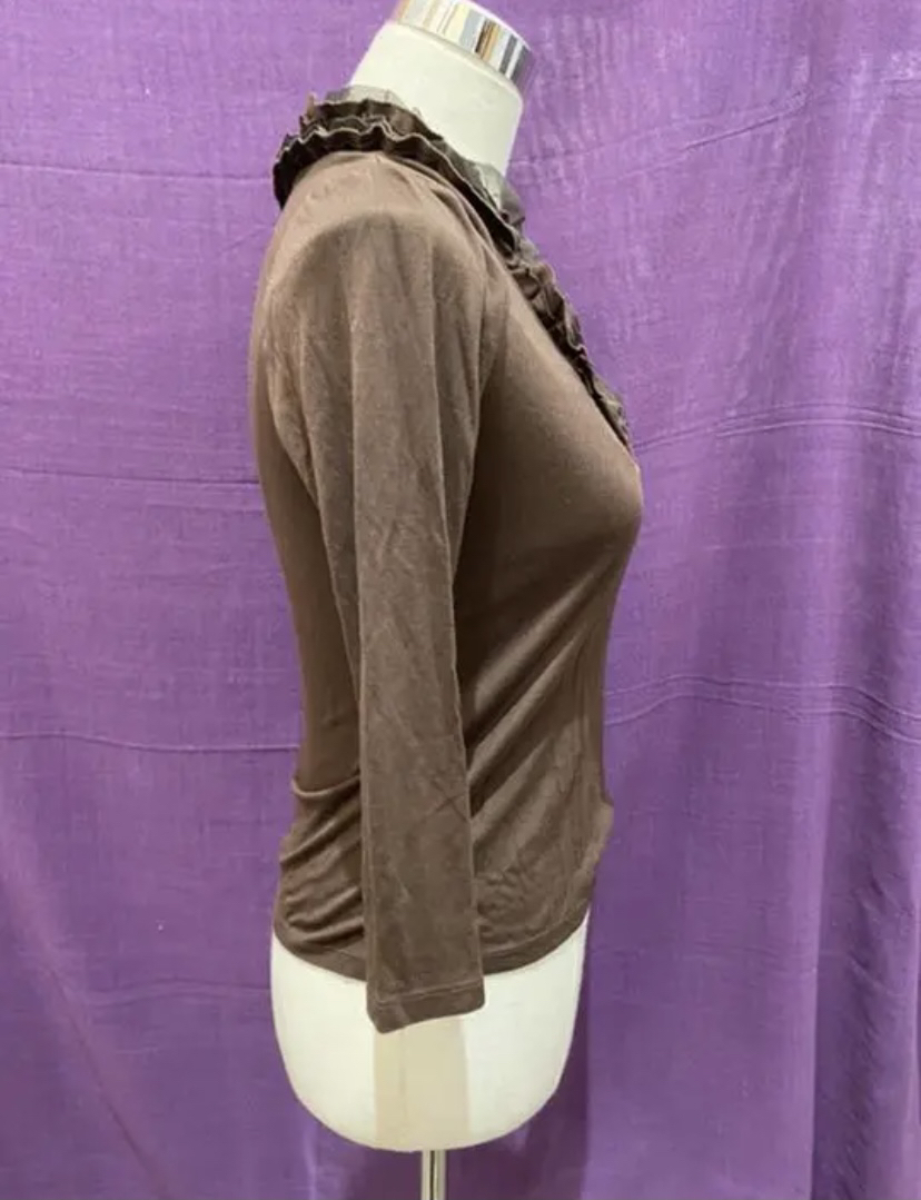 アナイ 襟元にフリルのついた ブラウンのトップス
