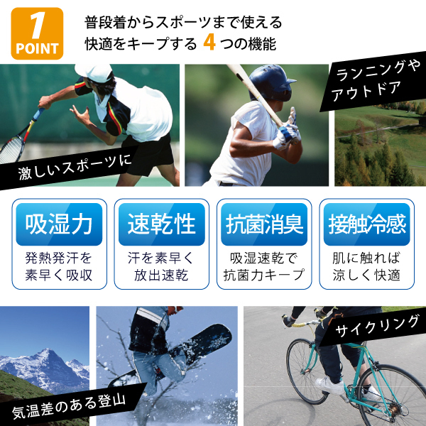 | シームレスボディマッピング構造により身体の発する熱と汗を効果的に吸収・放出する快適なインナーシャツです。 身体の熱を発する箇所にメッシュ構造を配置する事で、肌との間に空気の流れを作り生地のプッシュ/プル効果で水分を生地の層に素早く吸収します。 吸収した汗を速乾燥する事で抗菌・スピード消臭の効果も持続し 肌に触れる生地の接触冷感機能で、常に涼しく快適な着心地をキープできます。 超軽量素材のストレッチ素材は身体にストレスなくフィット 温室な気候でも涼しくさらさらとした状態を保ちます。 サイズ:横幅72x高さ70x胸幅42 cm 重量:130g カラー:黒・ブラック サイズ:M / L 素材:67% ポリエステル 26% ナイロン 7% スパンデックス 特徴:シームレスボディマッピング/抗菌・スピード消臭 接触冷感・クールスキン/速乾性/ストレッチ | |