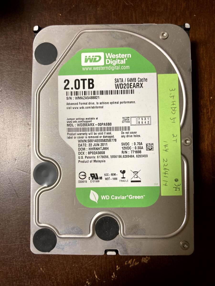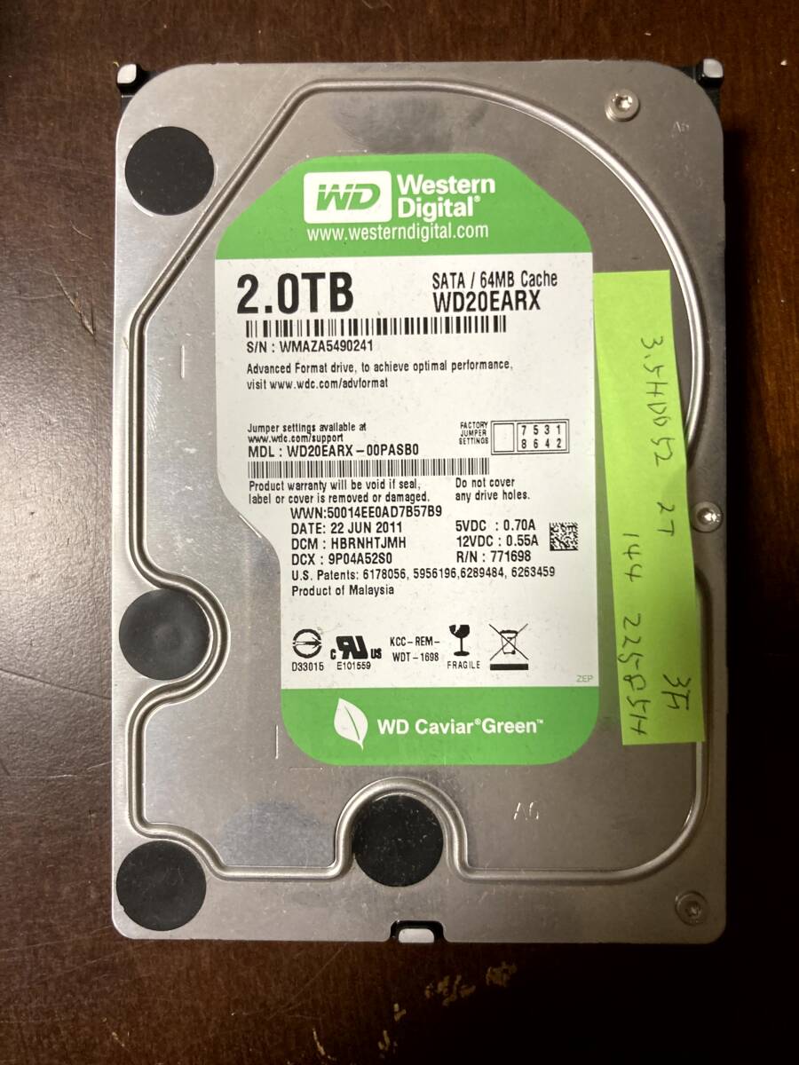 Western Digital WD20EARX-00PASB0 3.5inch HDD 2TB 中古 現状品 2個セット