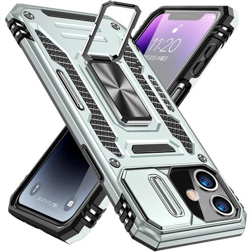 iPhone 11 用 ケース リング付き 衝撃吸収 耐衝撃 一体型落下防止 米国軍事MIL標準取得 スタンド機能 PC+TPU 二重構造 防塵 薄型 軽量 360度回転 全面保護カバー アイフォンケース 銀 MJJ-1051-59-04 772