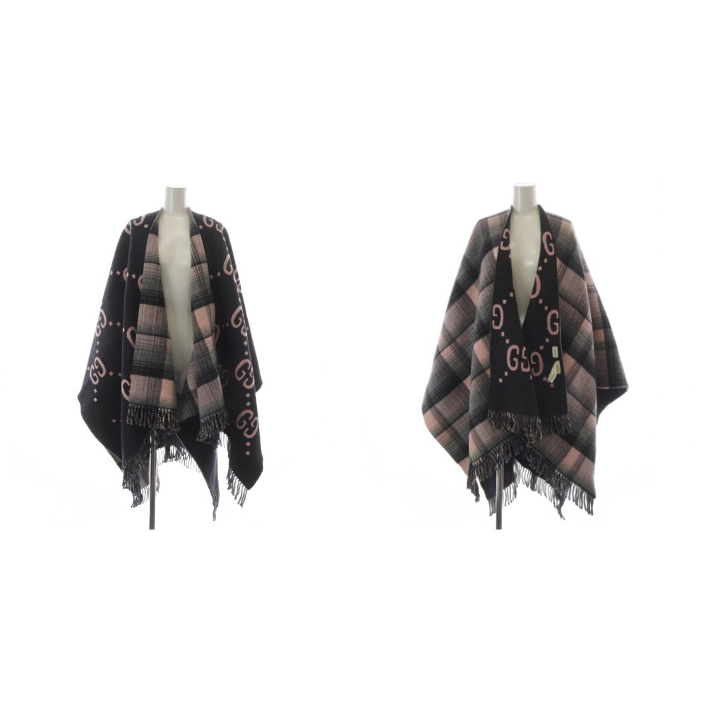 グッチ GUCCI リバーシブル GGウールケープポンチョ チェック ブラック ピンク 553118 /YO29 ■GY57 ■OH メンズ レディース