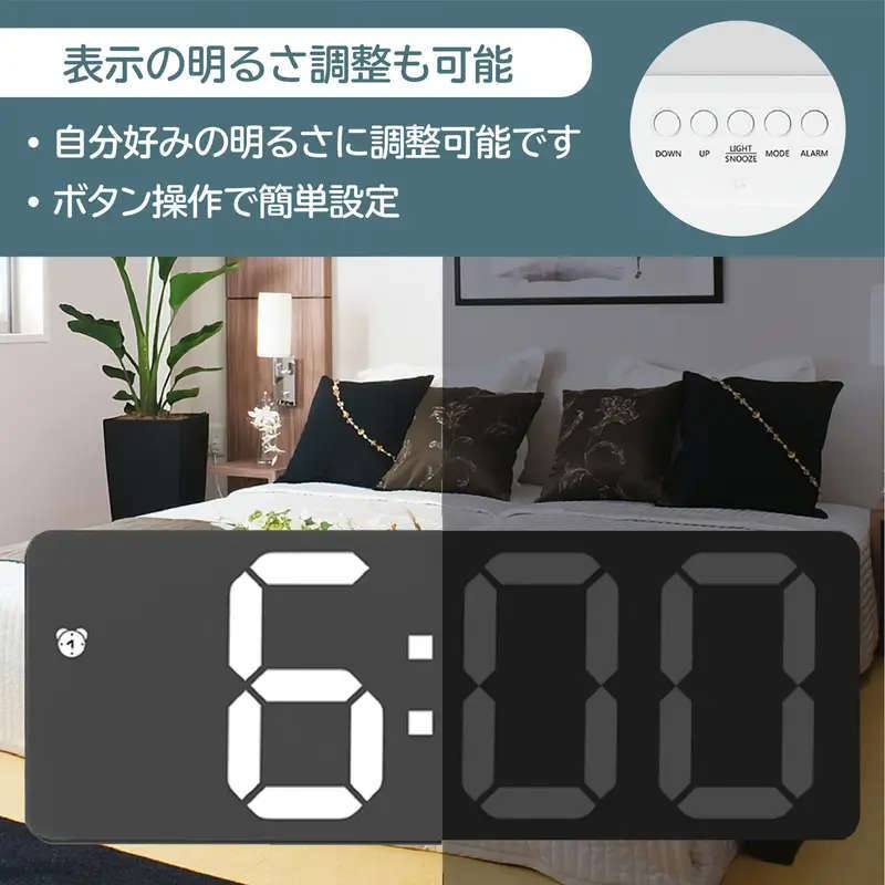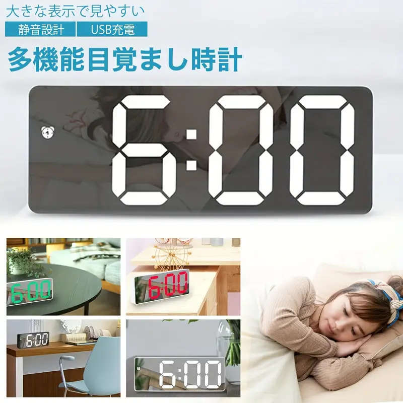 デジタル多機能 LED 目覚まし時計 温度表示 黒バック 白文字 黒フレーム