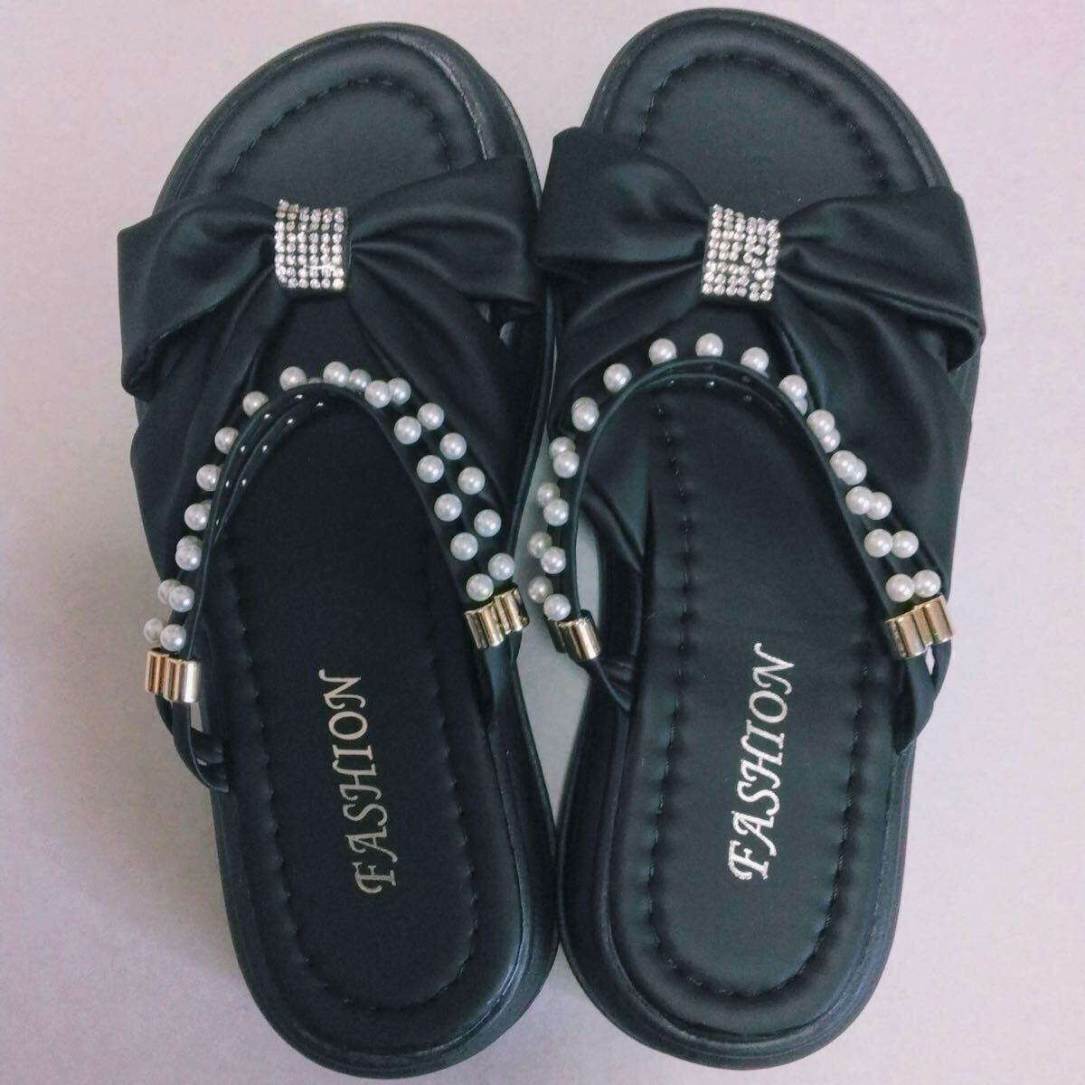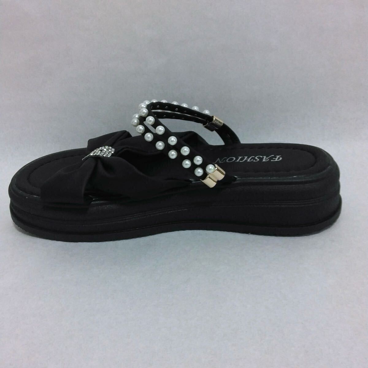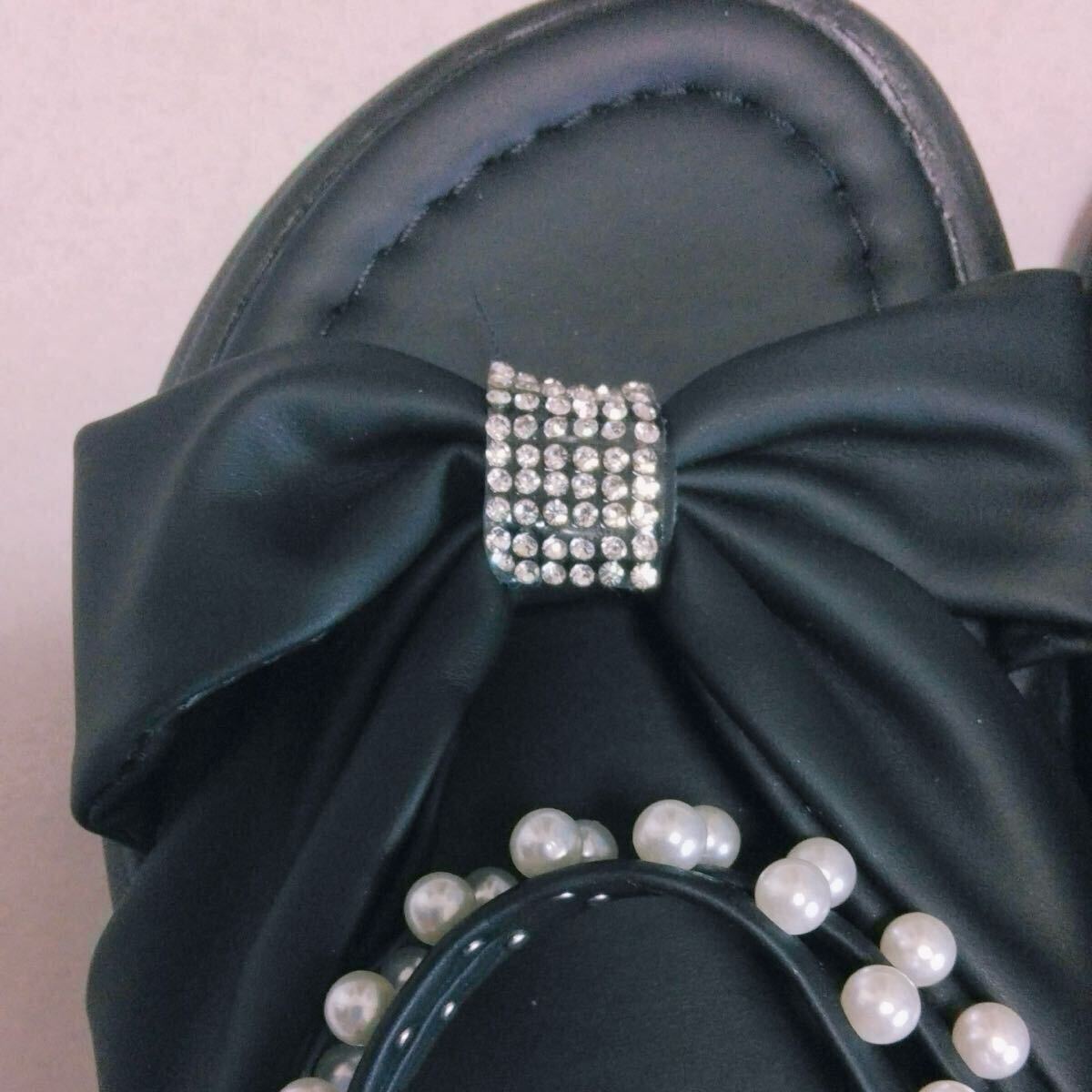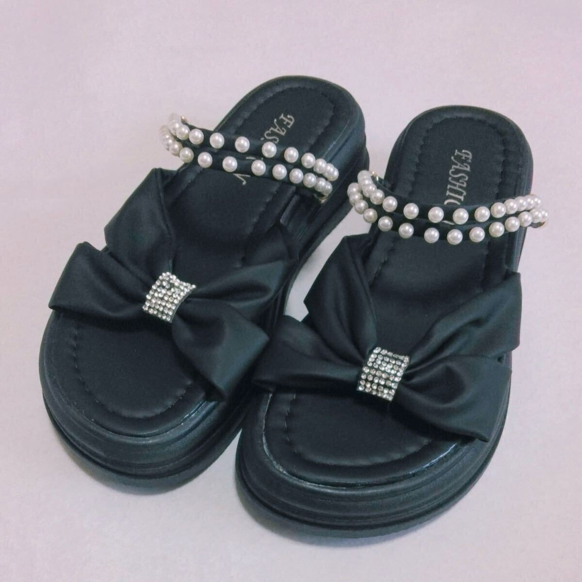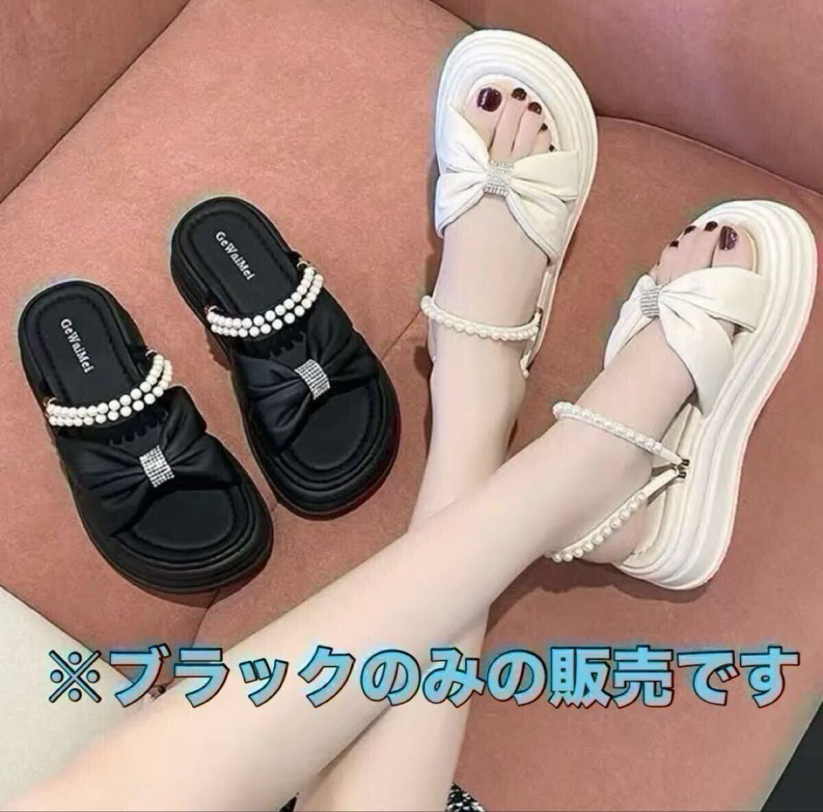 リボンとパールがエレガントで可愛らしい厚底サンダルです♪