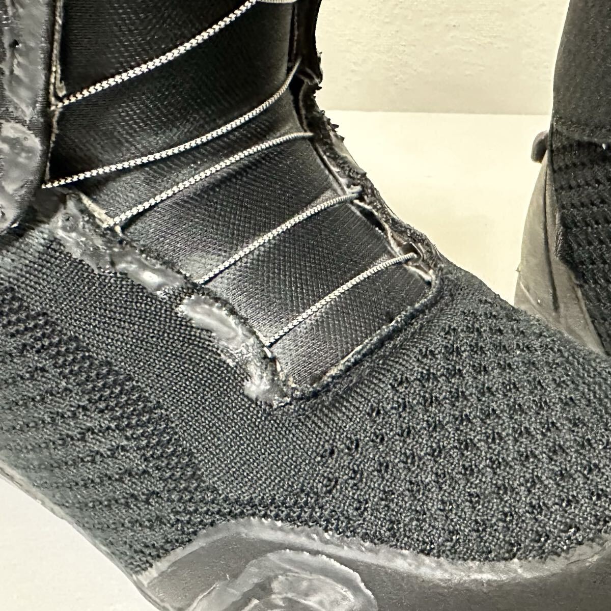 ソールとアッパーの境目、タンやBOAのガイドの縫製部分に塗り、縫製の糸切れやソール剥がれ防止に。
