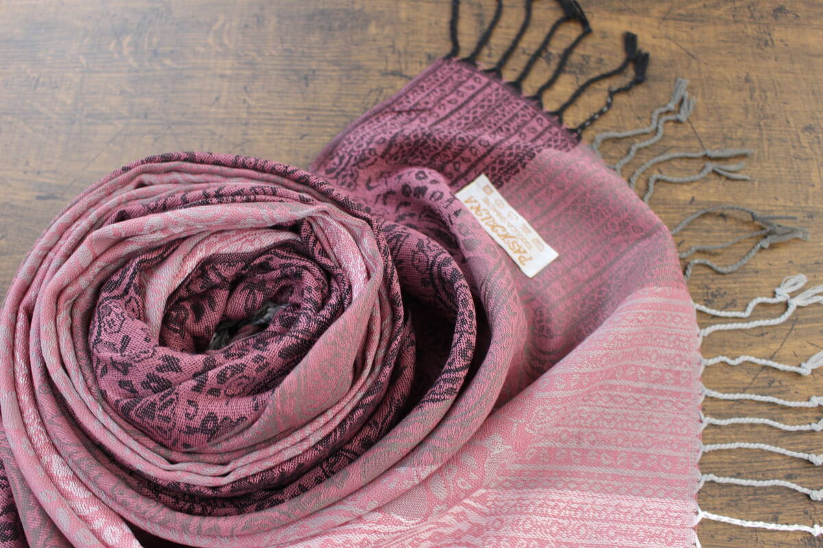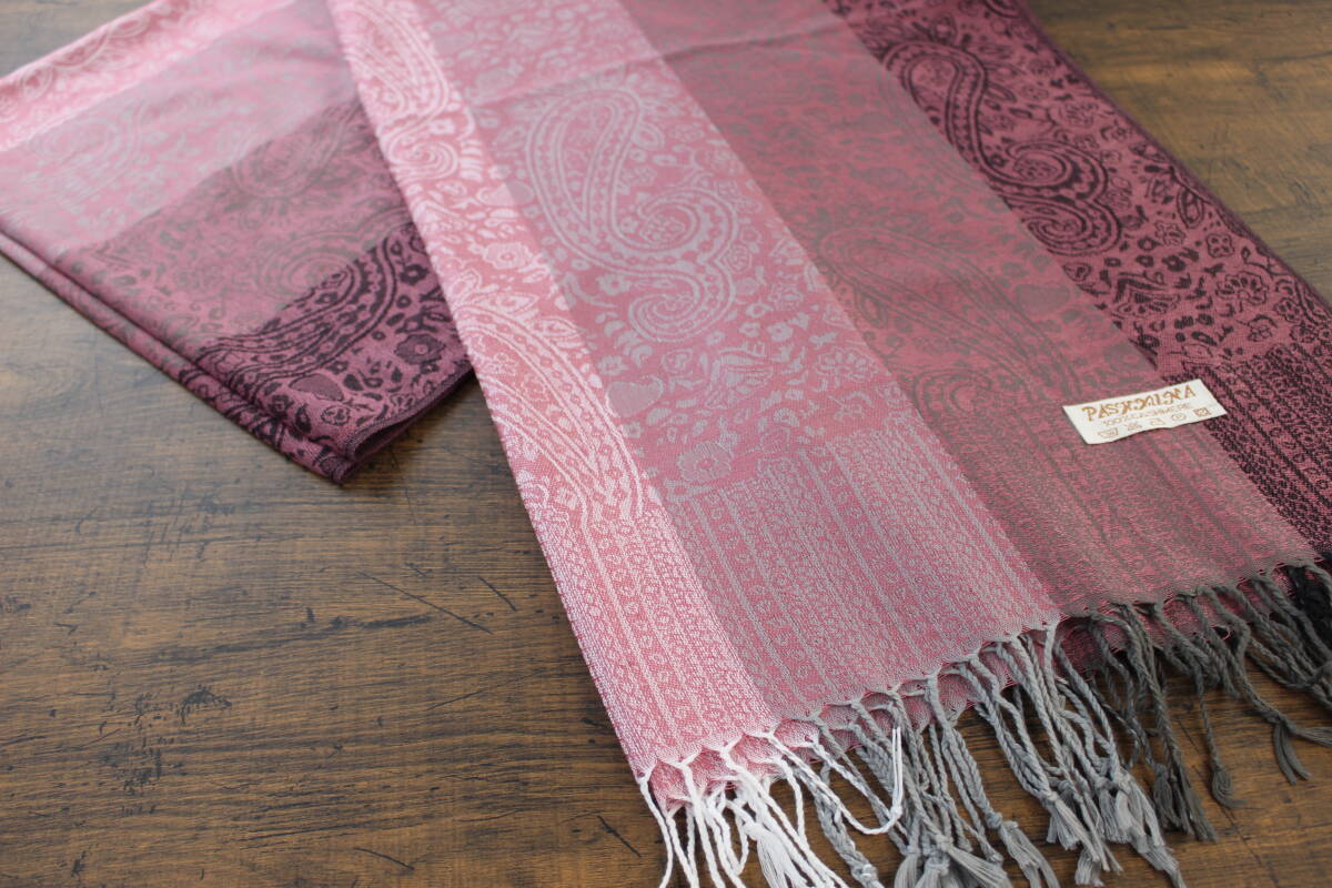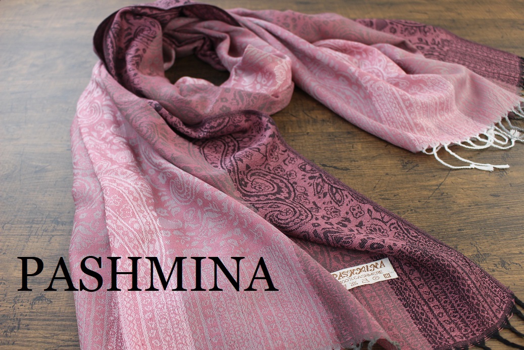 新品【パシュミナ Pashmina】ペイズリー柄 ピンク系グラデーション PINK 大判 ストール カシミア100% Cashmere