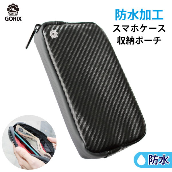 | 防水機能付き小銭、カード、スマホケース収納可能な防水ポーチ。 サイクリングウェアの背面ポケットに収まるスマートサイズです。 ・防水機能付きファスナーでポーチに入れた現金やスマホを濡らしません。 外部の雨水、熱による湿気や汗から保護します。 ※完全防水ではありません。 ・カードポケット、紙幣、小銭を入れて財布として 現金を折らずに収納できるのでかさばりません。 ・スマートフォンの画面を傷つけない裏地起毛スペースで 摩擦によるキズ付きを防止します。 内容 サイズ:横幅11 x高さ18.5 x厚み2.5 cm 重量:50g 材質:表地/ターポリン、裏地/ポリエステル起毛 デザイン:ブラックカーボン柄 | |