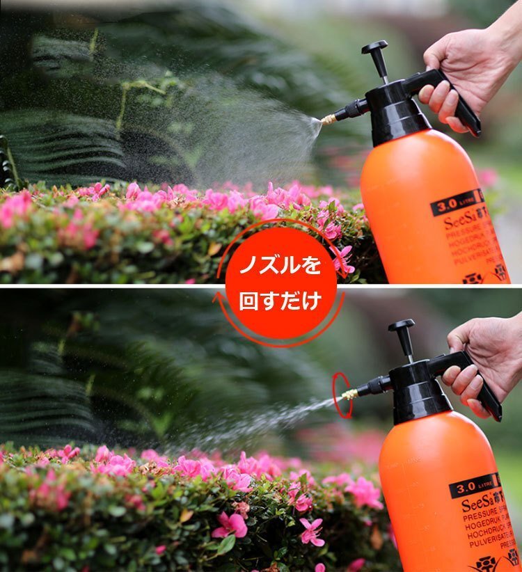 ◆加圧式ポンプ スプレー 霧吹き ハンディポンプ 3リットル 電源不要 ホース不要 ジェット水流 洗車 水やり すすぎ 3L容量 庭 ガーテン 農園 車洗浄 などに便利 MSTP3L