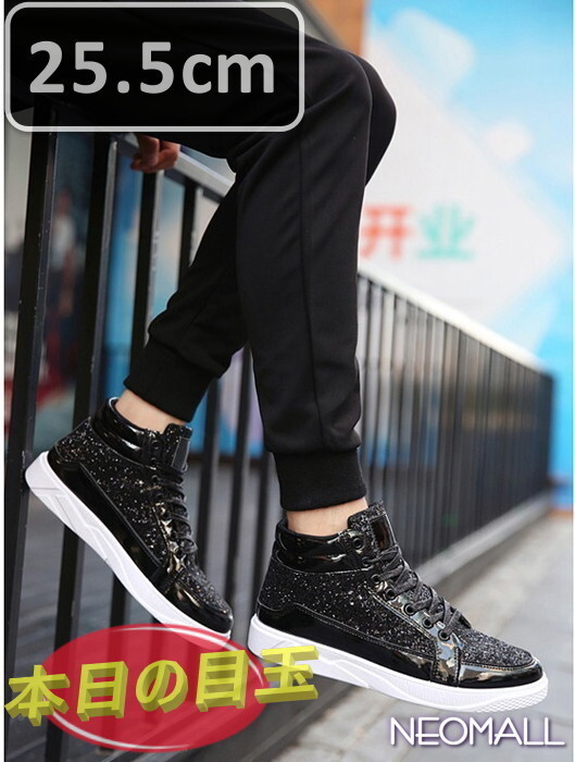 ☆ 激安 メンズ スニーカー 25.5cm ブラック 靴 シューズ 防滑 ランニング ジョギング 通勤 通学 旅行 【800】