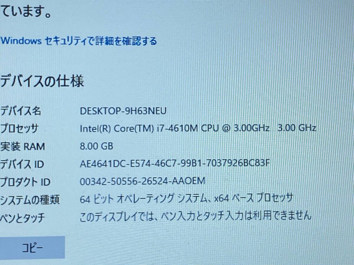 | S/N 845062677 付属品 電源ケーブル、バッテリー 【OS】Windows10 Pro 【CPU】Core i7-4610M 3.00GHz 【記憶媒体】HDD:500GB 【メモリ】8GB |