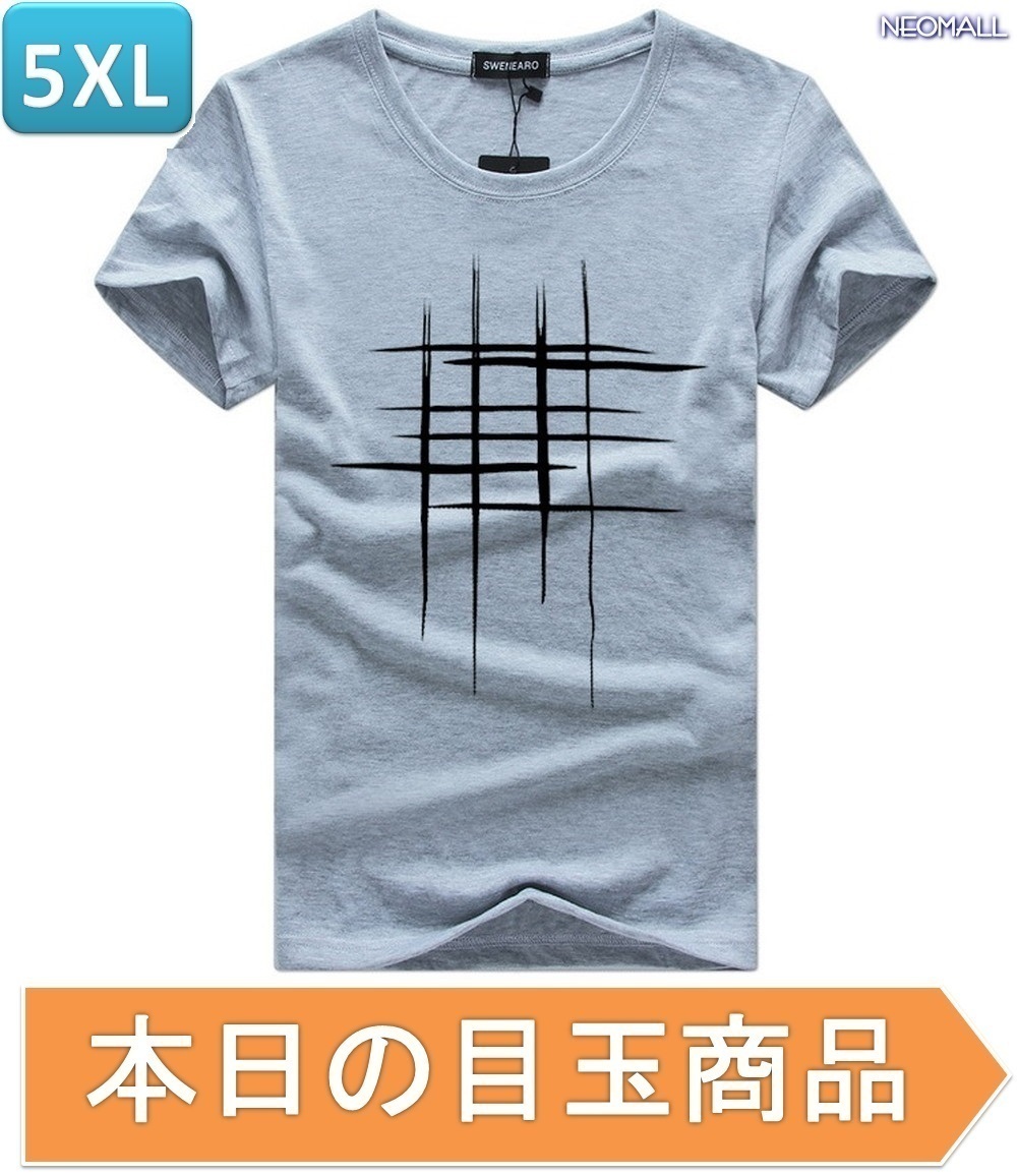 本日のお買得 ☆ 丸首 半袖 Tシャツ【348】 グレー 5XLサイズ トップス シャツ シンプル イラスト デザイン 春夏