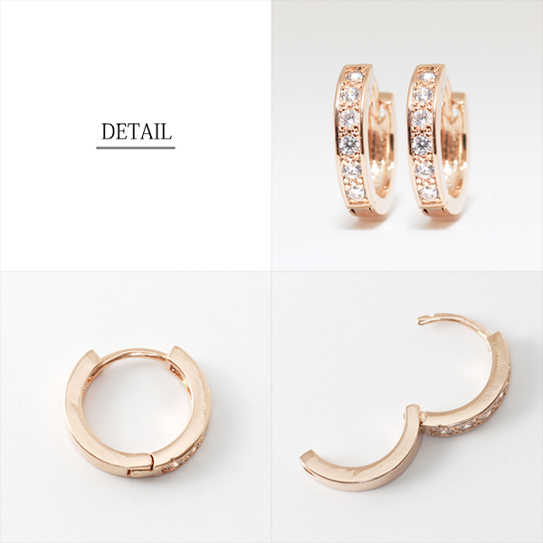 新品/ピアス/K18GP/フープ/ピンクゴールド/18金/ダイヤ/レディース/両耳/キャッチレス/シンプル/小さい/小さめ/リング/上品/CZ/PG