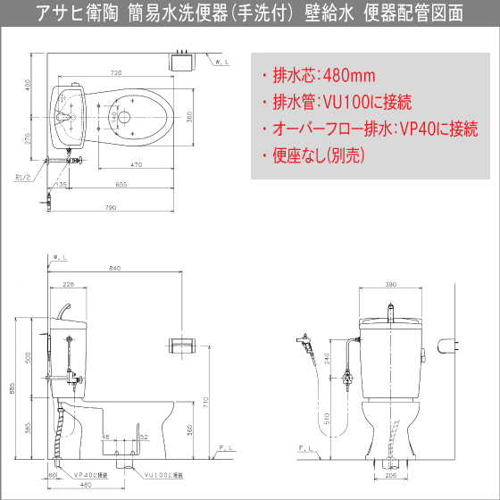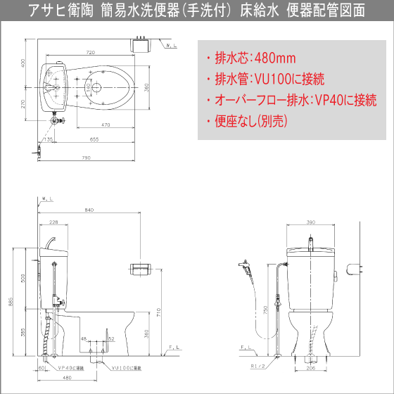 ★ アサヒ衛陶 簡易水洗便器 サンクリーン(手洗付) 便座なし ★