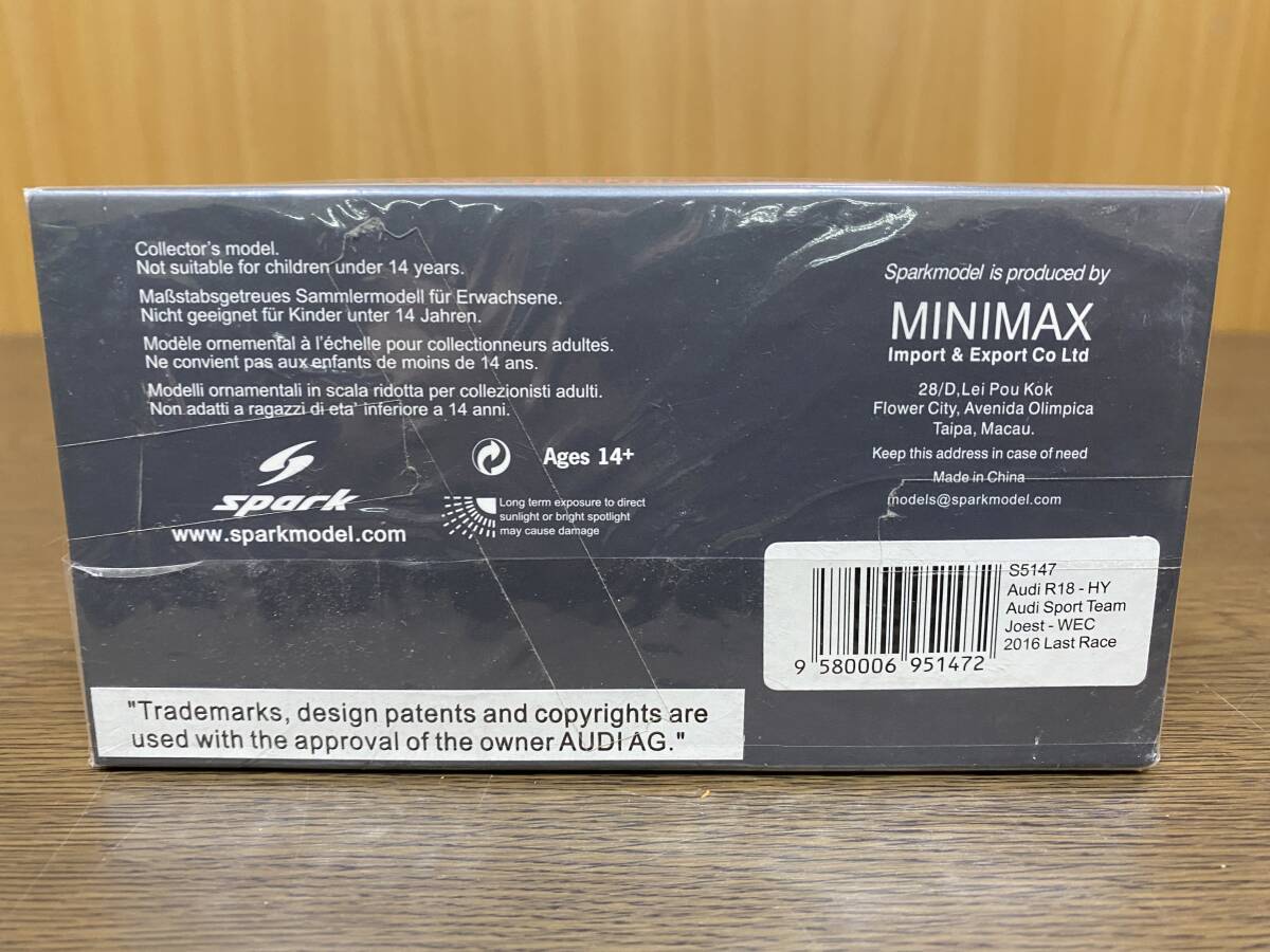 35) Spark スパーク S5147 1/43 アウディ Audi R18 HY Audi Sport Team Joest-WEC 2016 Last Race