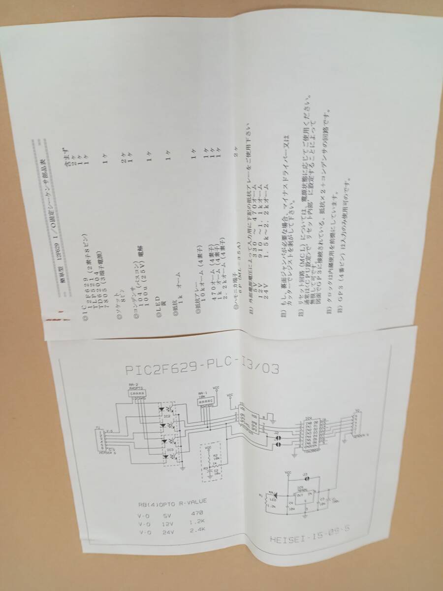 PICマイコン 12F629のプリント基板完成品DC24V仕様の未使用品です(未使用12F629付)。電子回路図、部品リスト図付きです。お送り方法ですが定形外郵便物の扱いでよろしければ全国一律¥180でお届けできます。よろしくお願いいたします。