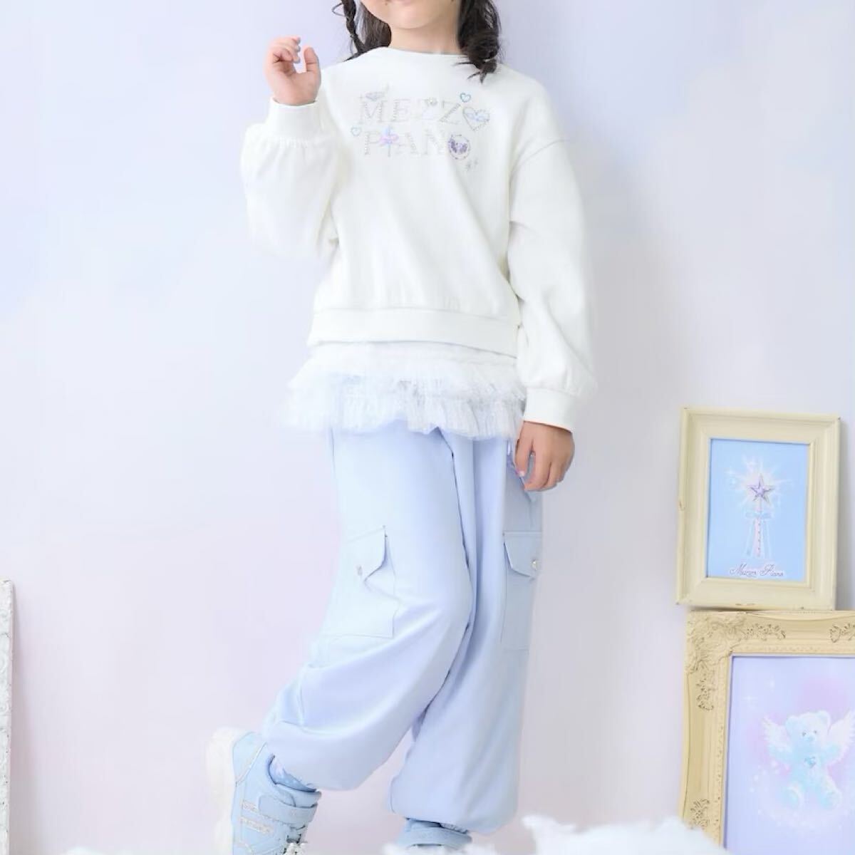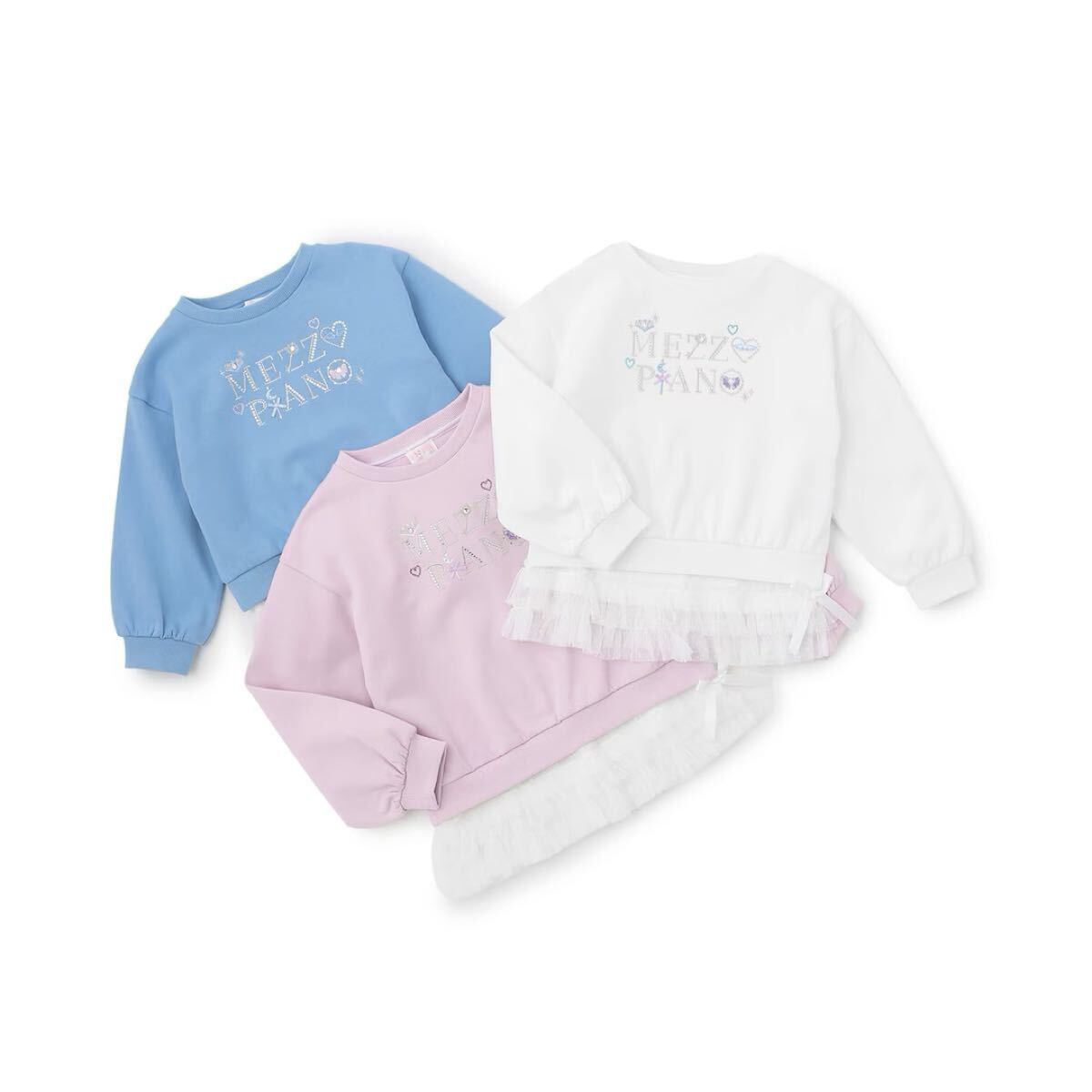 素材 トレーナー:綿76% トレーナー:ポリエステル24% Tシャツ:本体:綿100% チュール部分:ポリエステル100%