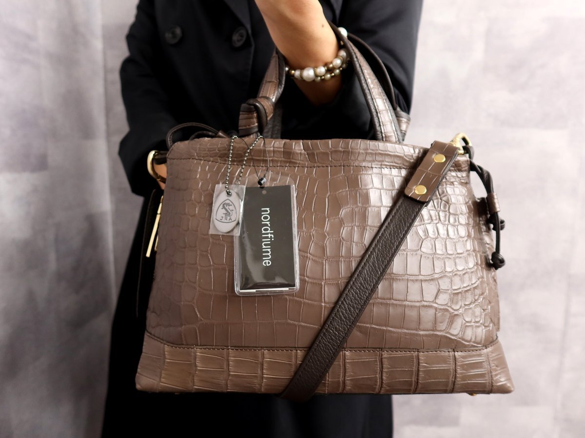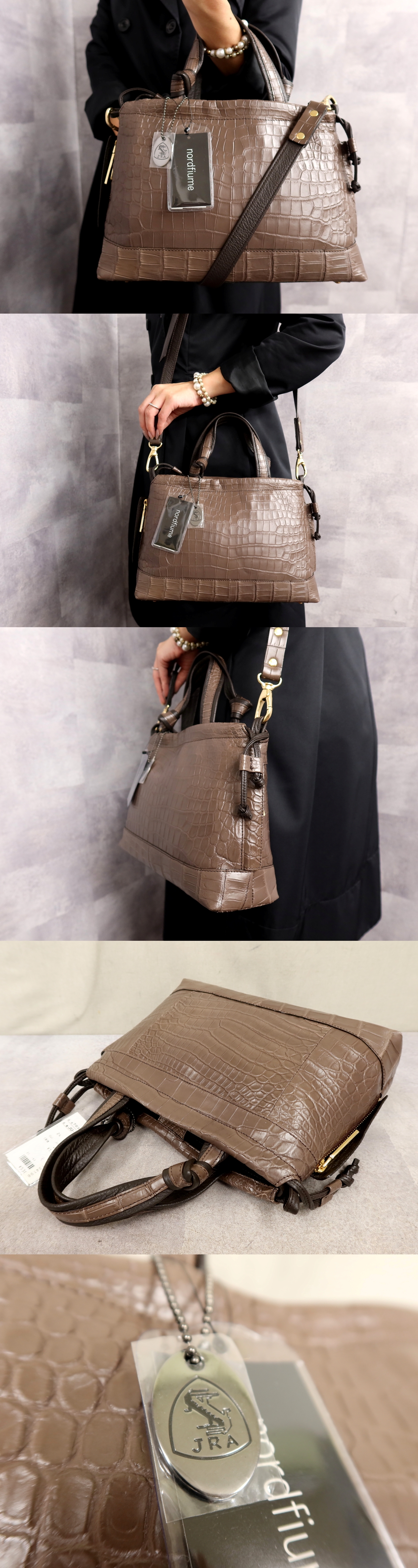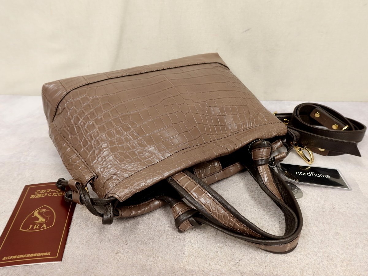 ●超美品●NORDFIUME ノードフューメ●JRA認定●クロコダイル 本 ワニ 革●2way ハンド バッグ●モカブラウン●ゴールド金具●B5●Js62561