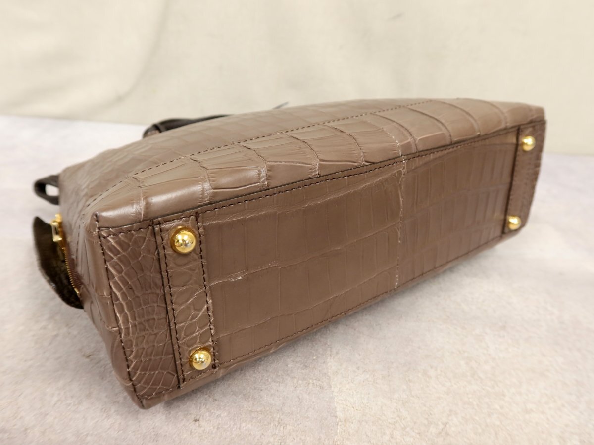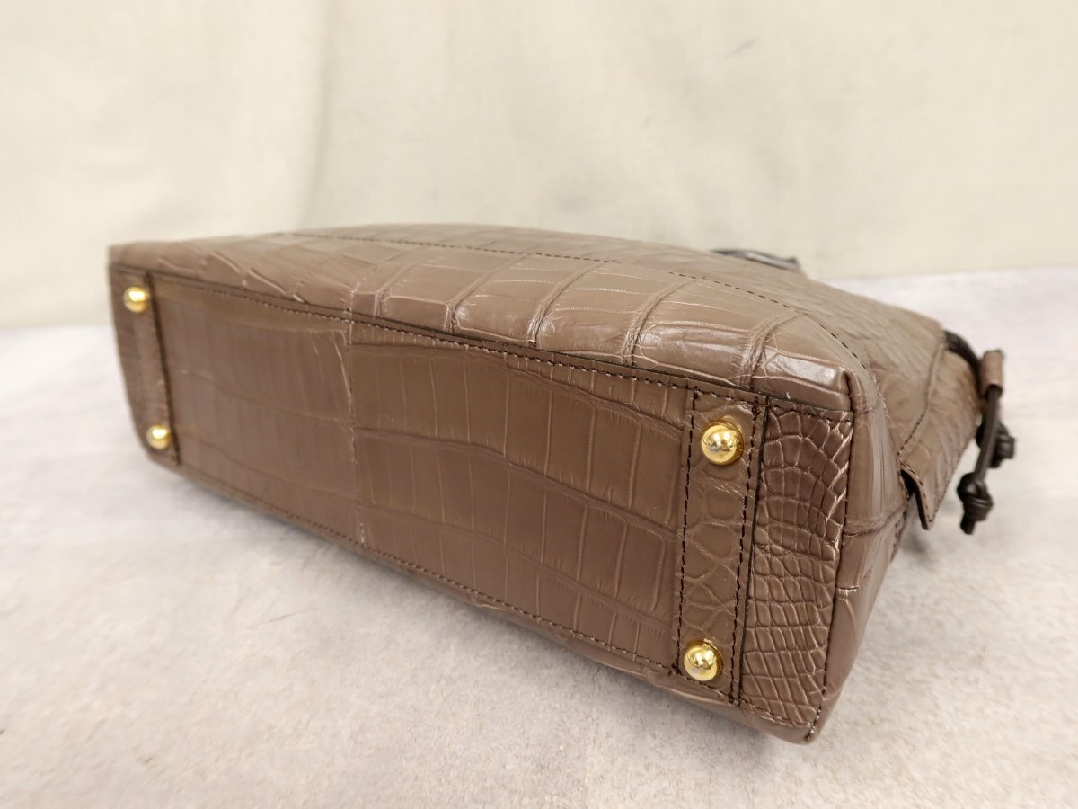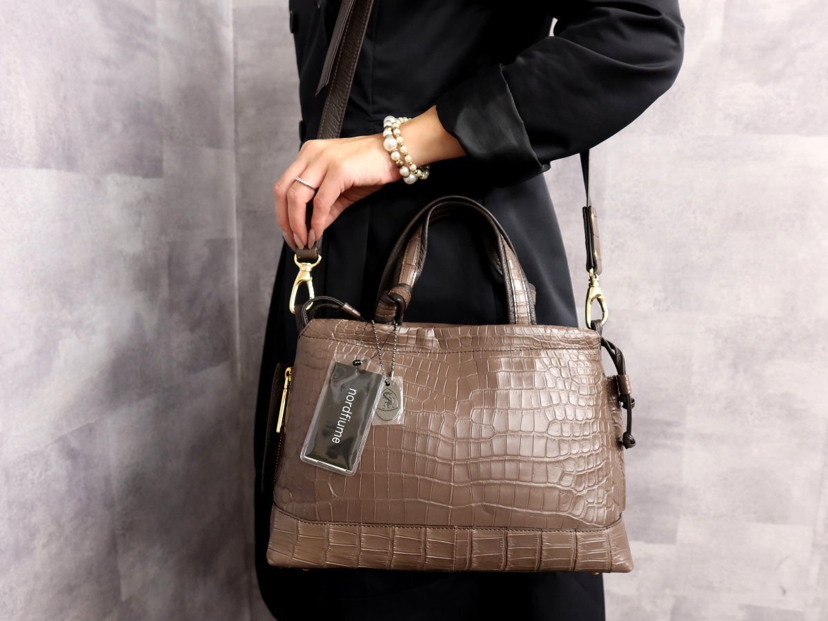●超美品●NORDFIUME ノードフューメ●JRA認定●クロコダイル 本 ワニ 革●2way ハンド バッグ●モカブラウン●ゴールド金具●B5●Js62561