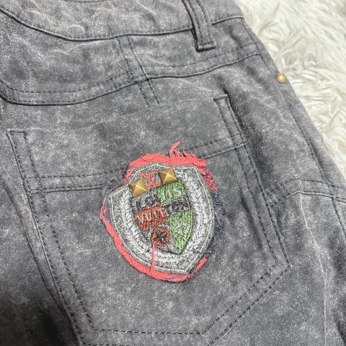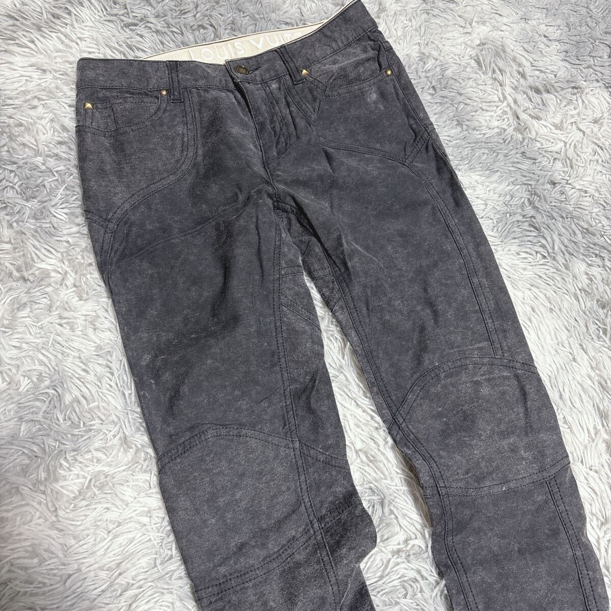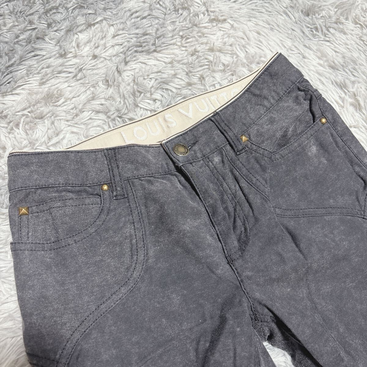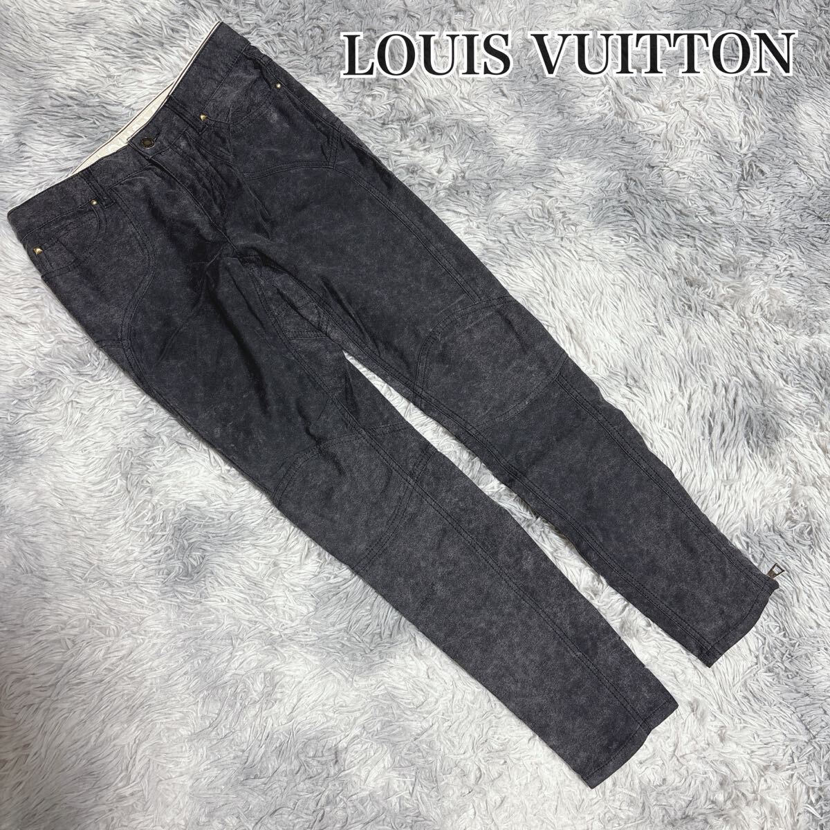 状態良 LOUIS VUITTON ルイヴィトン ワッペン スタッズ バイカーパンツ スキニー ストレッチ 裾ジップ 34 レディース