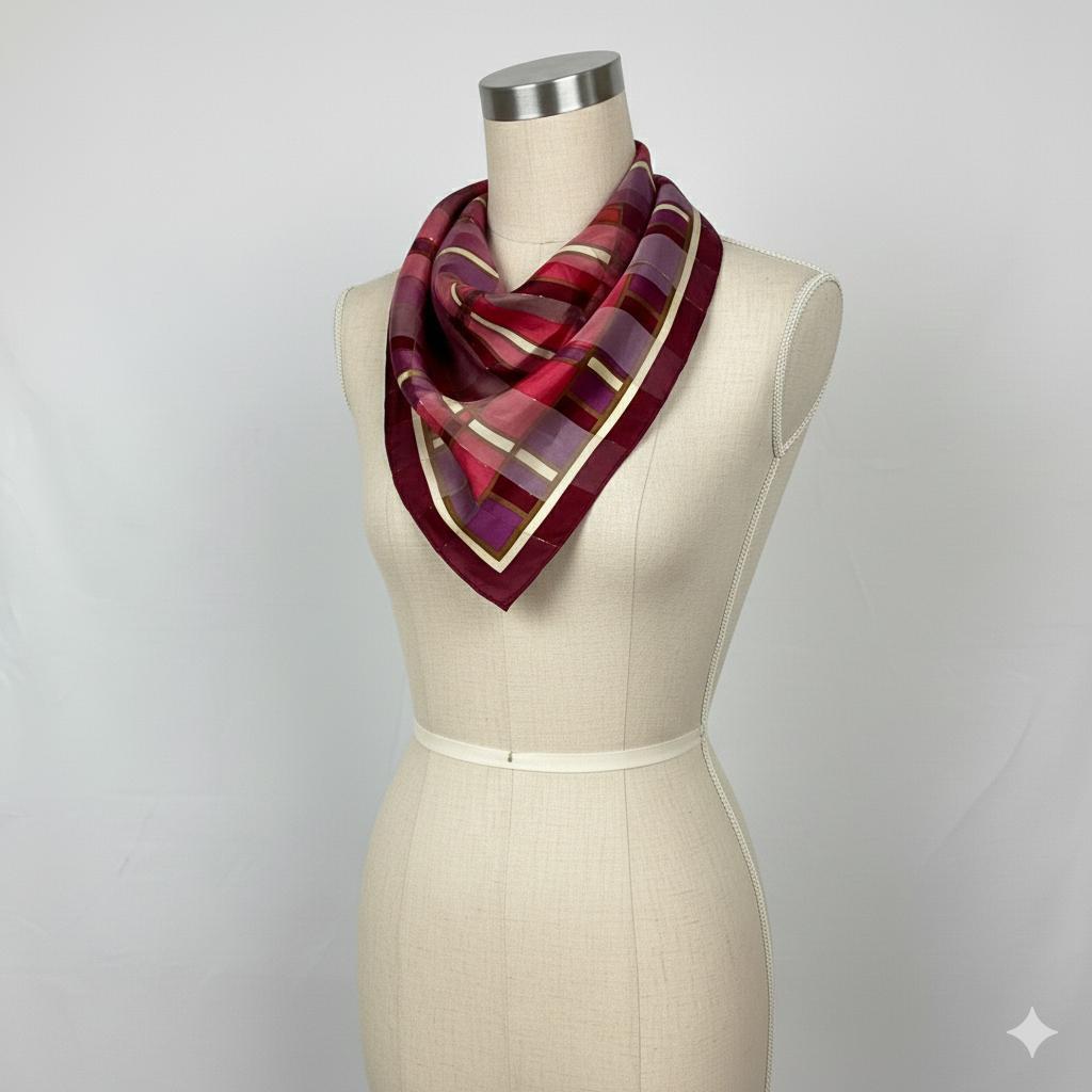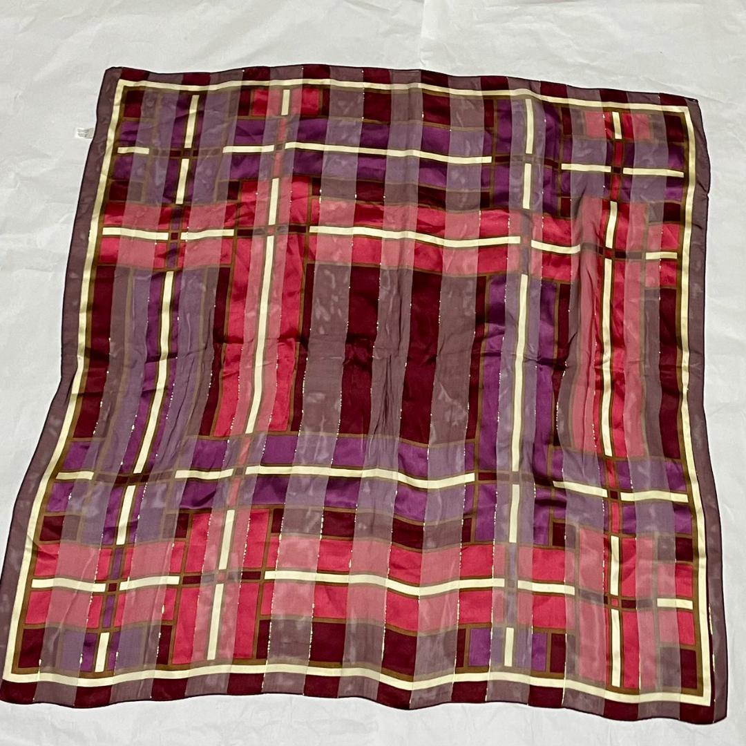 こちらは【絹100%】日本製 ヴィンテージ スカーフ シルク 大判 格子柄 ボルドーになります。