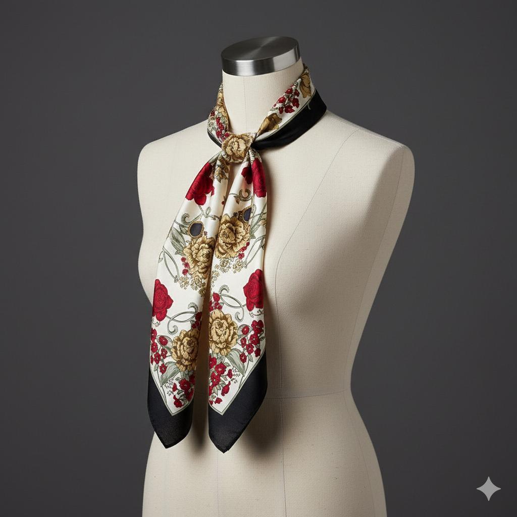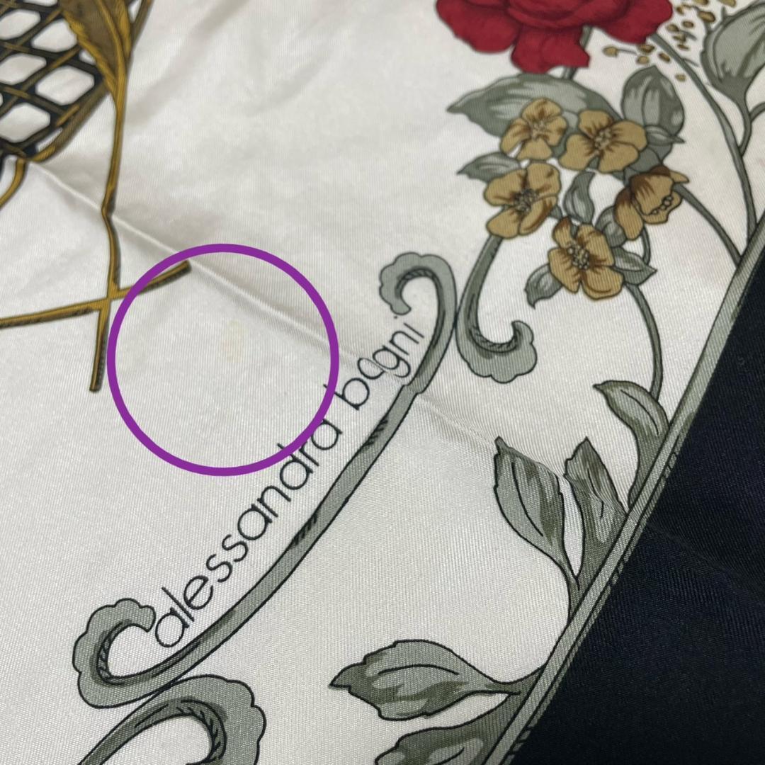 こちらはAlessandra Bagni 大判スカーフ 絹100% 黒×赤 花柄 になります。