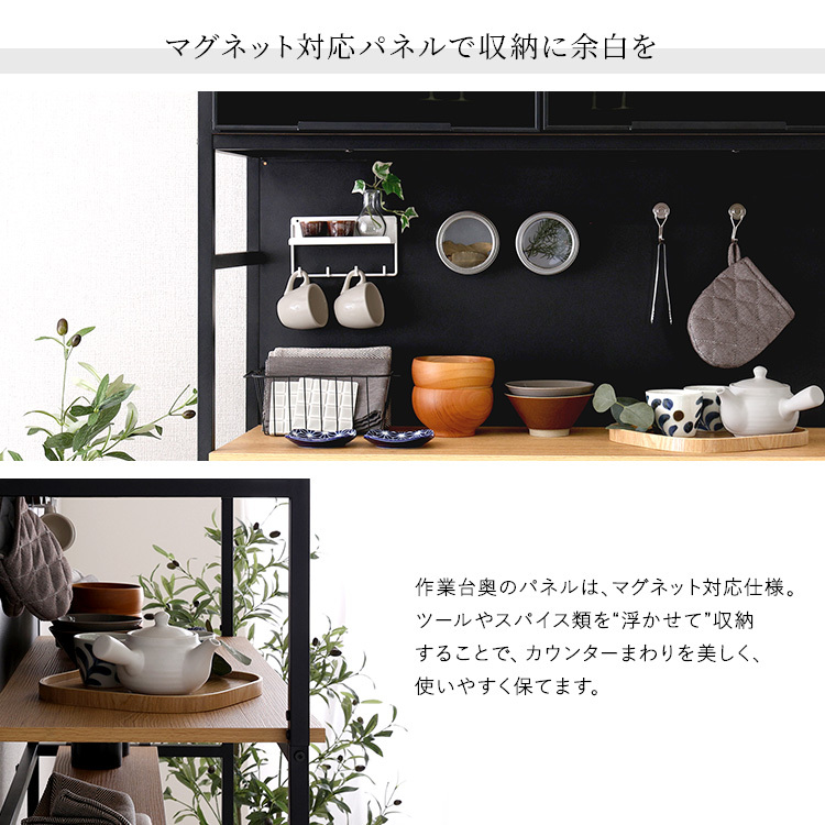 ヴィンテージ調マグネットゴミ箱上ラック ブラックガラス GREACK-グリック- シャビーオーク