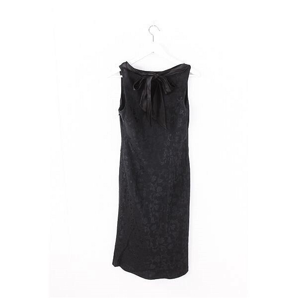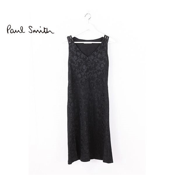 A3403/極美品 春夏 PS Paul Smith ポールスミス 総柄 花柄 ボタニカル アセテート ドレス 膝丈 ミモレ丈 ワンピース 40 黒/レディース