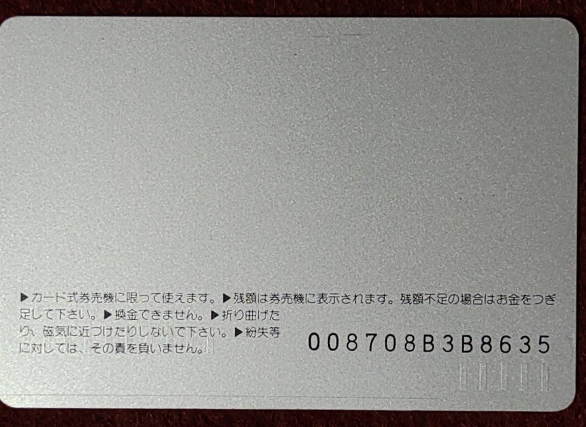 ごく稀に磁気不良の場合があります。その場合は申し訳ありませんがJR各社・主な駅のみどりの窓口まで持ち込んでいただき、返金処理をお受け願います(国鉄・JR他社のカードも返金してくれます。少々日数がかかります)。