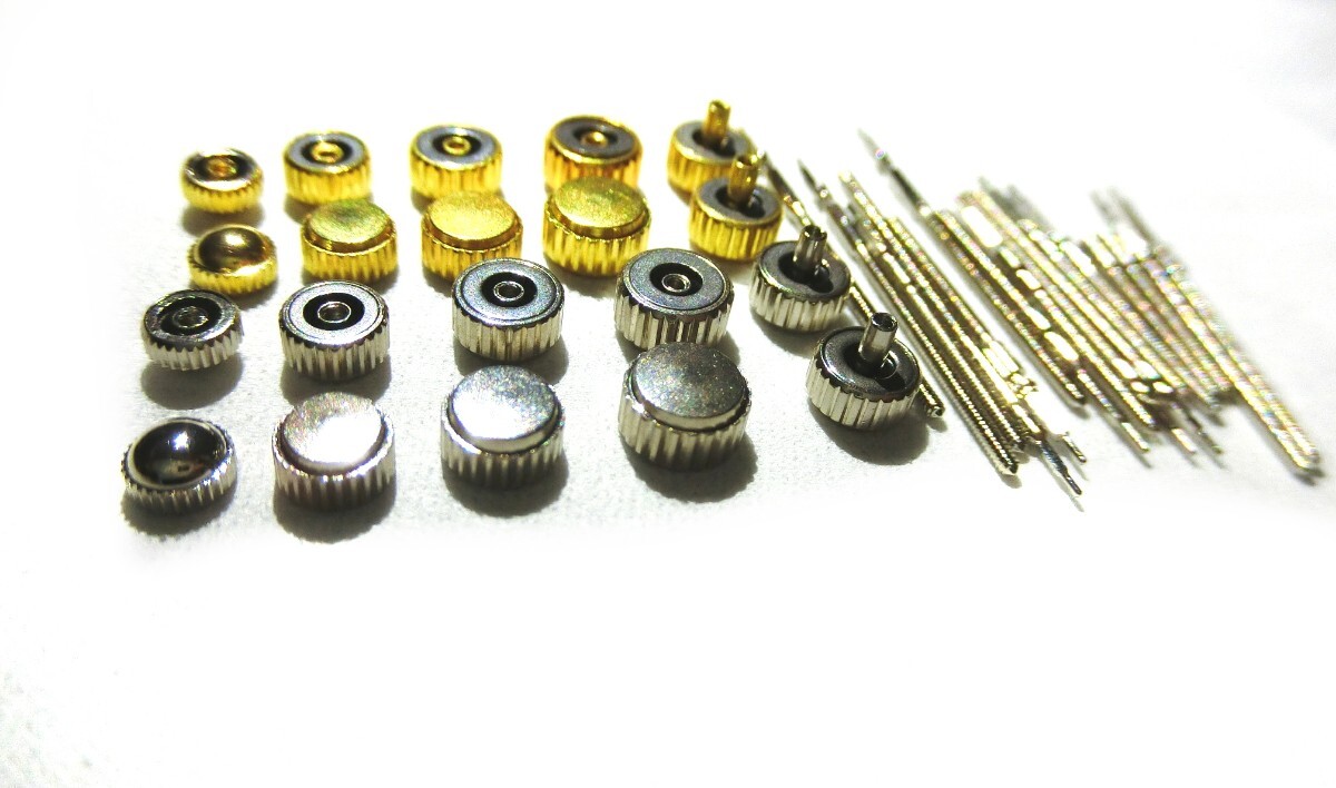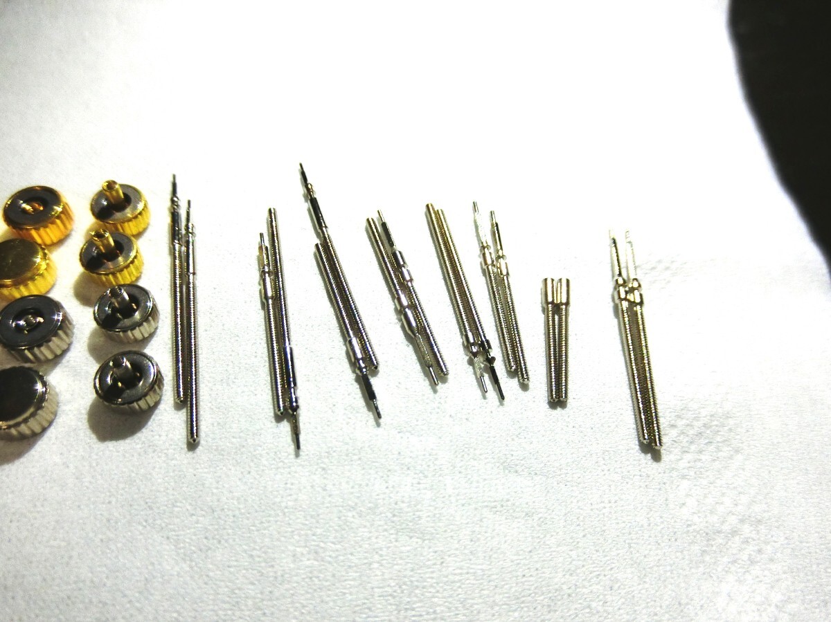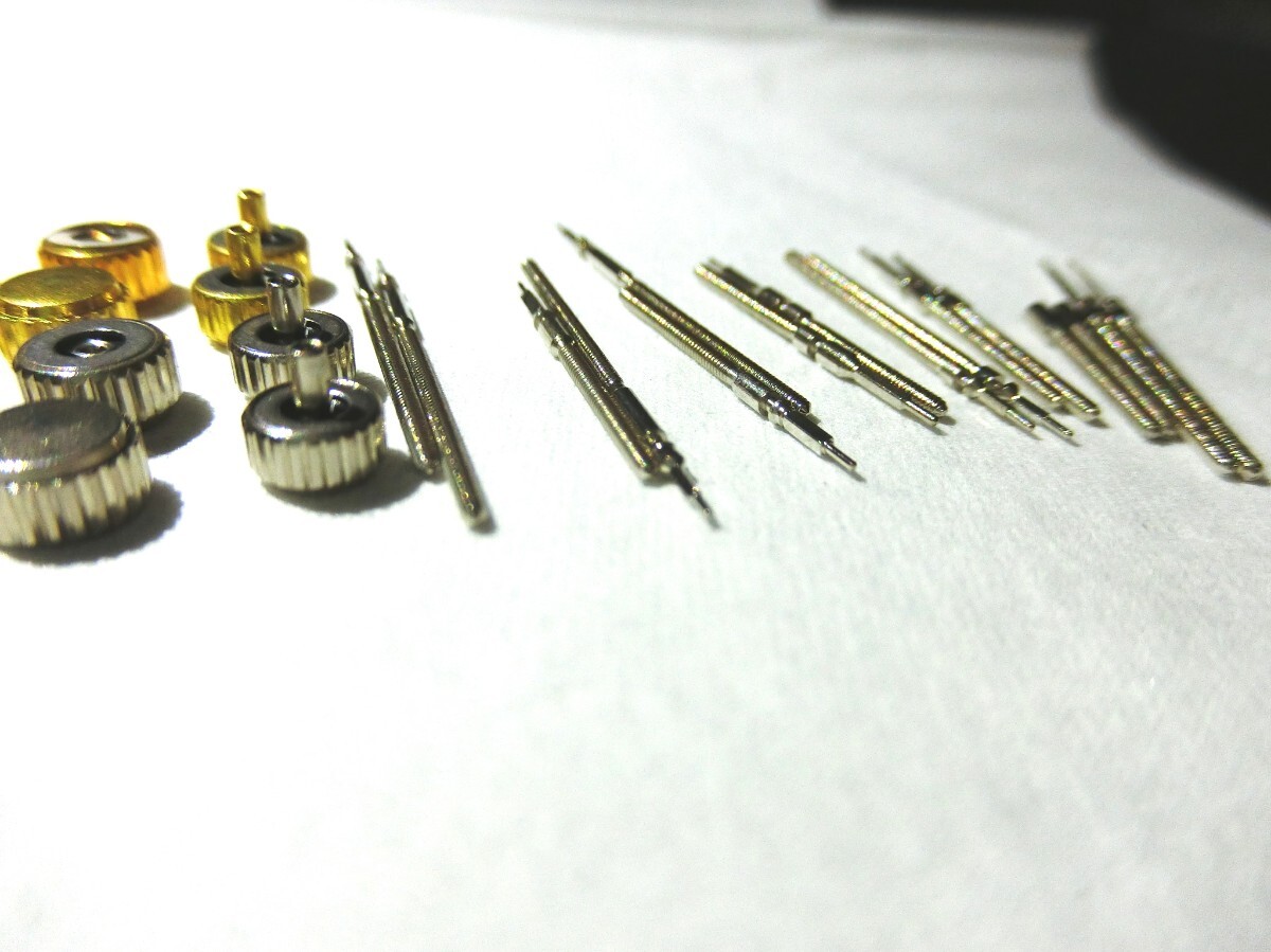腕時計 部品 竜頭 リューズ 巻芯 巻き芯 巻き真 巻真 セット 修理 18種類 金銀2つずつ 36個 防水パッキン