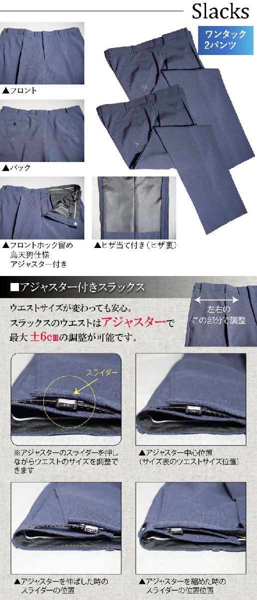 | スラックス | スラックス2本 ワンタック ホック留め 烏天狗仕様 ウエストアジャスター付き(±6cm) ヒザ当て付き |