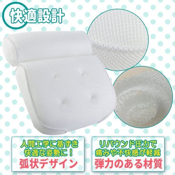 お風呂枕 まくら 3D通気メッシュ 柔らかい 弾力性 吸盤 滑り止め 安眠 肩こり 快適お風 吸水速乾 丸洗い 大きめ フック付き