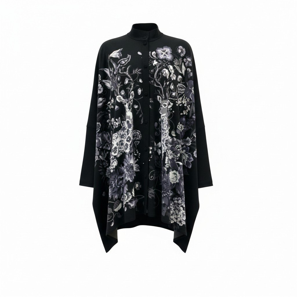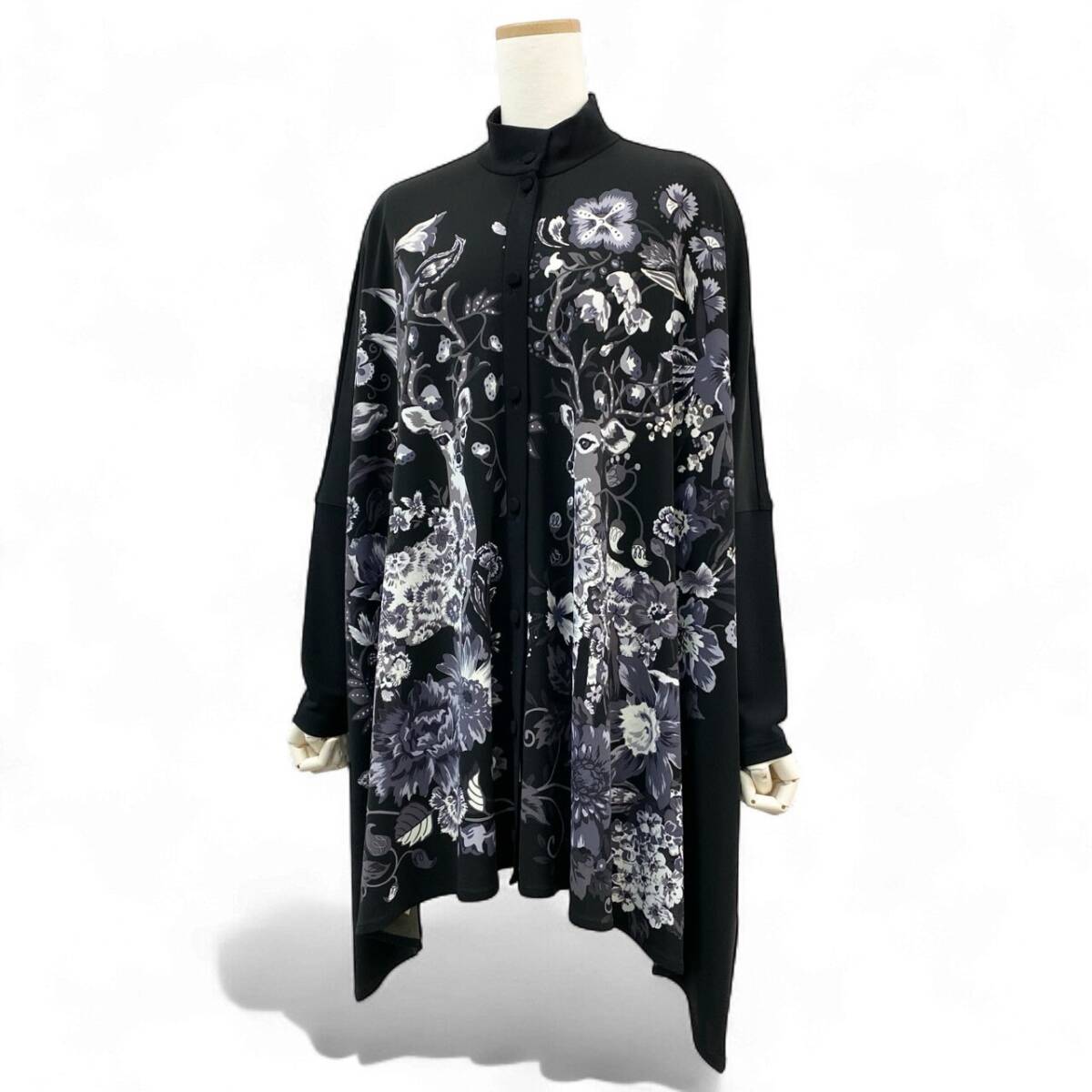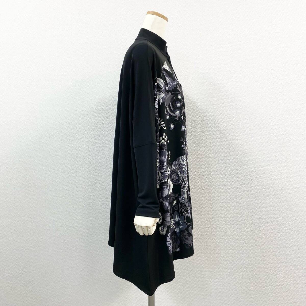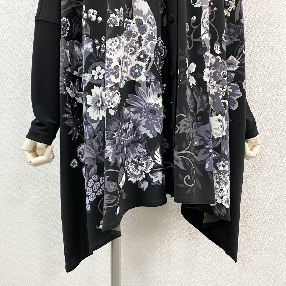 | スタッフ商品コメント | ブラックベースにグレートーンのフラワーアートが映える、TOKUKO 1er VOL らしい個性的なチュニックワンピースです。なめらかな素材感と落ち感のあるシルエットが美しく、動くたびに柄が引き立ちます。比翼調のボタンデザインとスタンドカラーがモードな印象を加え、1枚で主役級の存在感。レギンスや細身パンツとの相性も抜群で、デイリーからお出かけまで幅広いシーンに活用できます。 |