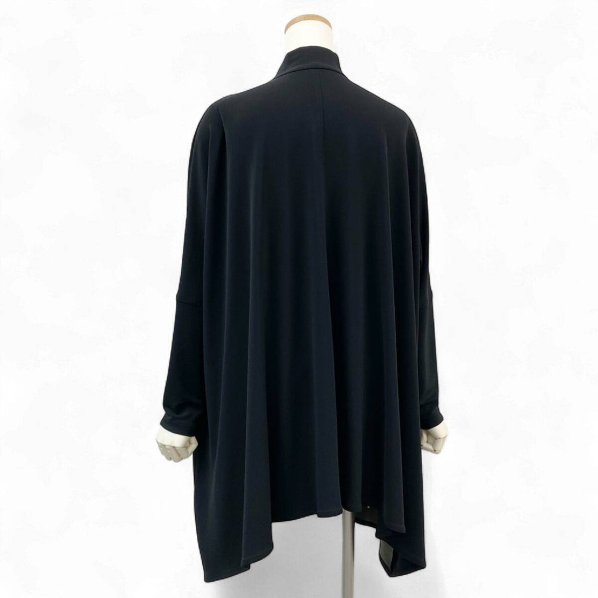 | AIによるサイズ診断 | 実寸は着丈77cm・身幅105cm・ゆき丈71cmで、身幅が非常に広いゆったりシルエットのため、体型を選ばず着用できます。 丈感は身長155〜165cmで「ヒップが隠れる〜太もも中間」ほどの長さになり安心感があります。 ドロップショルダーとフレア感のあるAラインにより、ゆとりのある着心地を求める方や体型カバーしたい方に最適です。 薄手インナーとのレイヤードでロングシーズン使いやすい一着です。 |