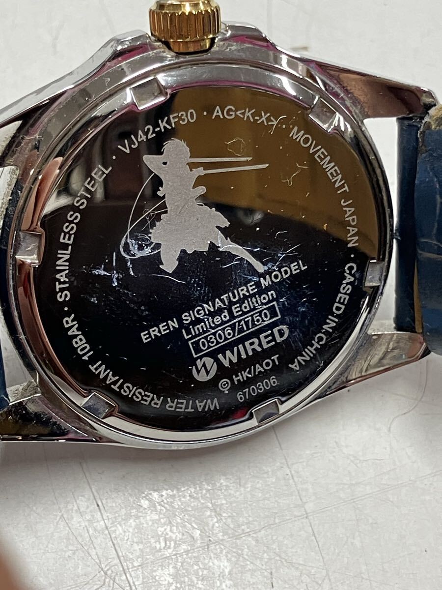 セイコー SEIKO ワイアード WIRED エレン 進撃の巨人 限定品 クォーツ 3針 デイト VJ42-KF30 エレン 腕時計 稼働品 ネコポス発送