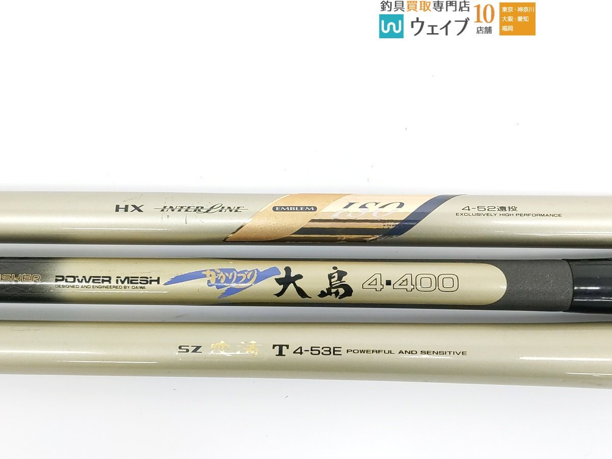 | 商品名 | ダイワ HX インターライン エンブレム ISO 4-52遠投、PM かかりづり 大島 4-400、SZ 波濤 T 4-53E 計3本 ※注有 ジャンク品 |